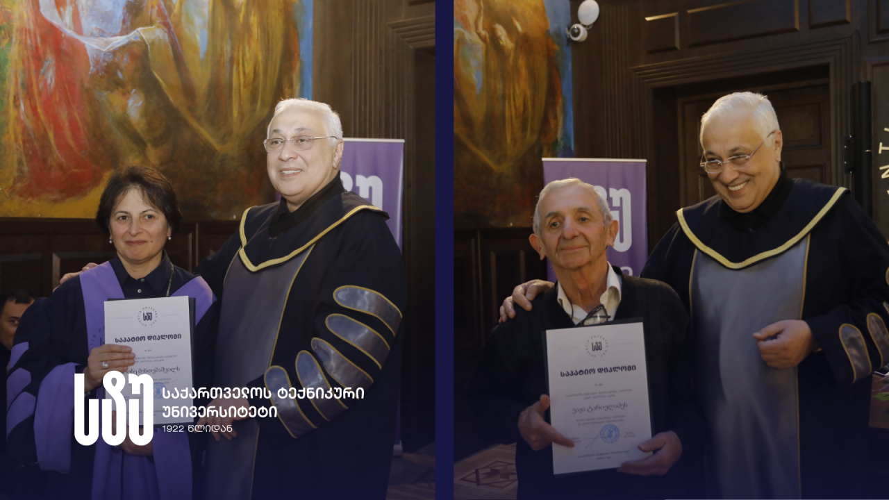 სტუ-ის რექტორმა მეცნიერებს, მარინა მენთეშაშვილს და ვაჟა ტარიელაძეს, საპატიო დიპლომები გადასცა