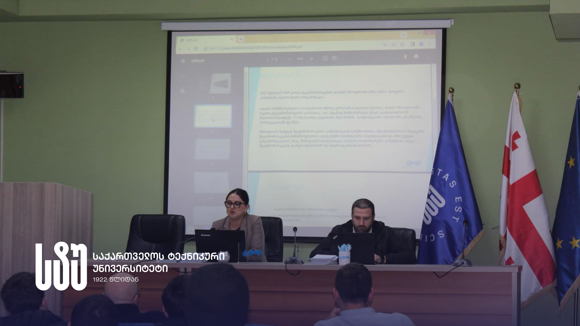 საქართველოს ტექნიკური უნივერსიტეტის ენერგეტიკის ფაკულტეტის სტუდენტებს კომპანია „ჯორჯიან უოთერ ენდ ფაუერის“ (gwp) ჟინვალჰესის პროექტების მენეჯერი, ელექტროენერგიის წარმოების დეპარტამენტის უფროსის მოადგილე ირაკლი ბაკურაძე და „ჯივიპის“ უფროსი რეკრუტერი მარიამ ადეიშვილი შეხვდნენ.