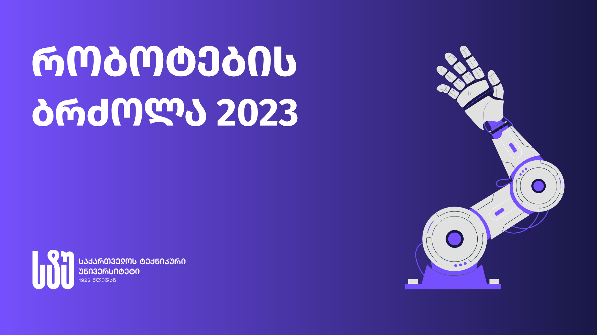 საქართველოს ტექნიკური უნივერსიტეტის ნიკო ნიკოლაძის სტუდენტური კლუბის ინიციატივით და ინფორმატიკისა და მართვის სისტემების ფაკულტეტის სტუდენტური სახელოსნოს ორგანიზებით, ცხადდება შემეცნებით-ინდუსტრიული კონკურსი „რობოტების ბრძოლა – 2023“.