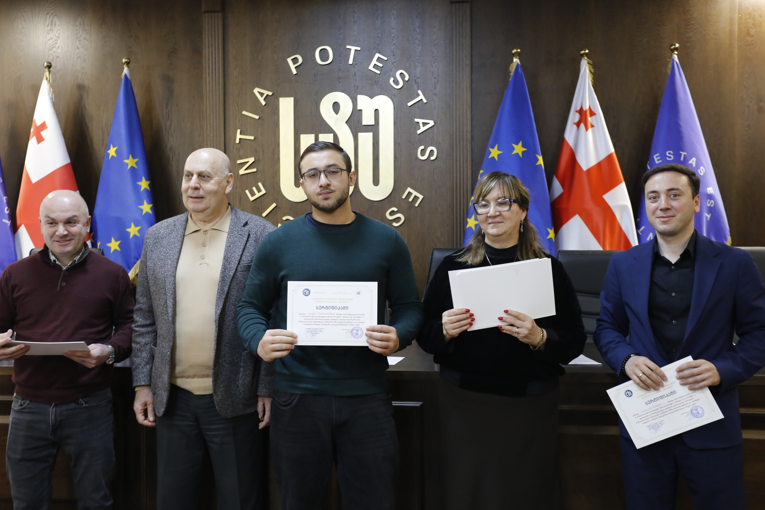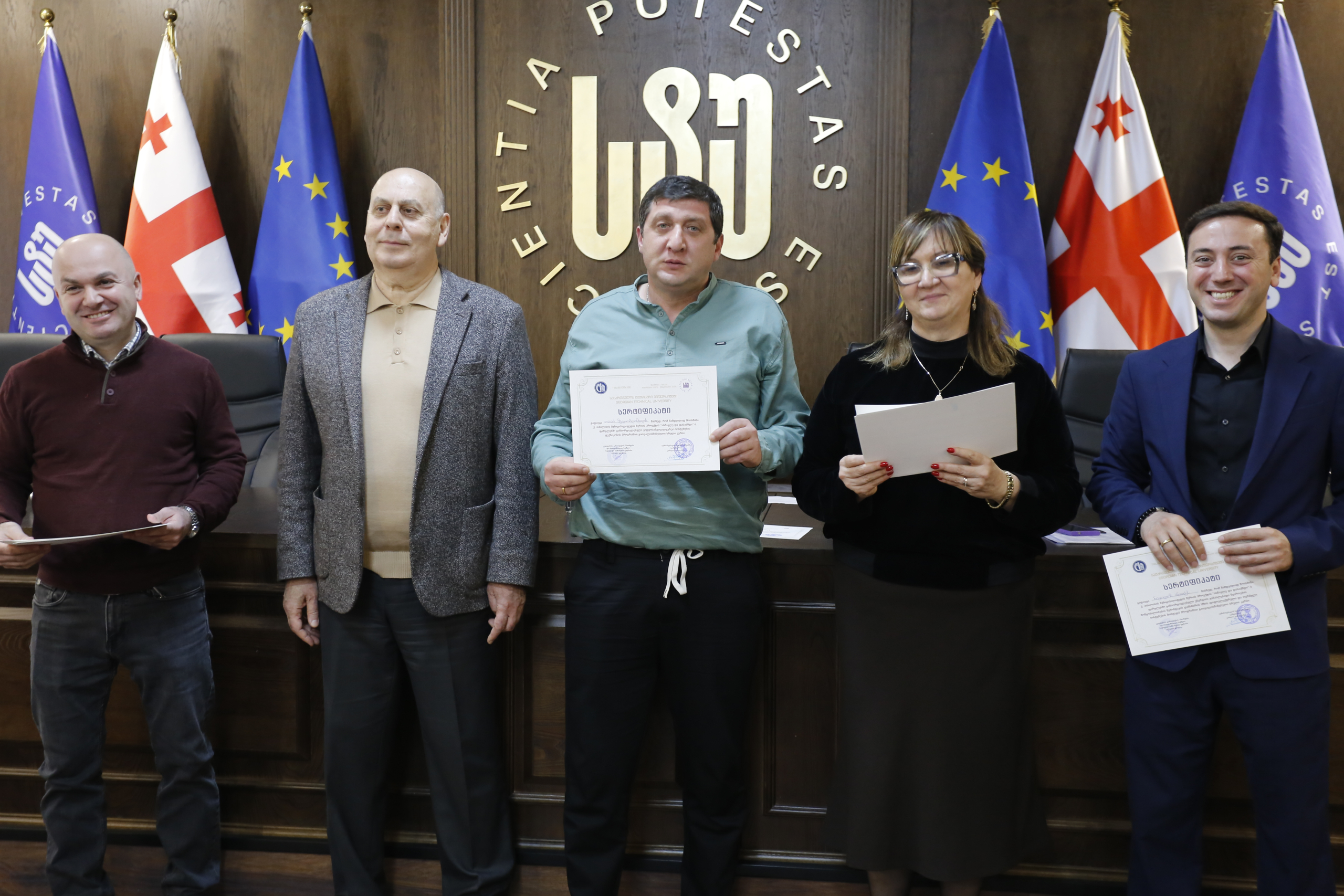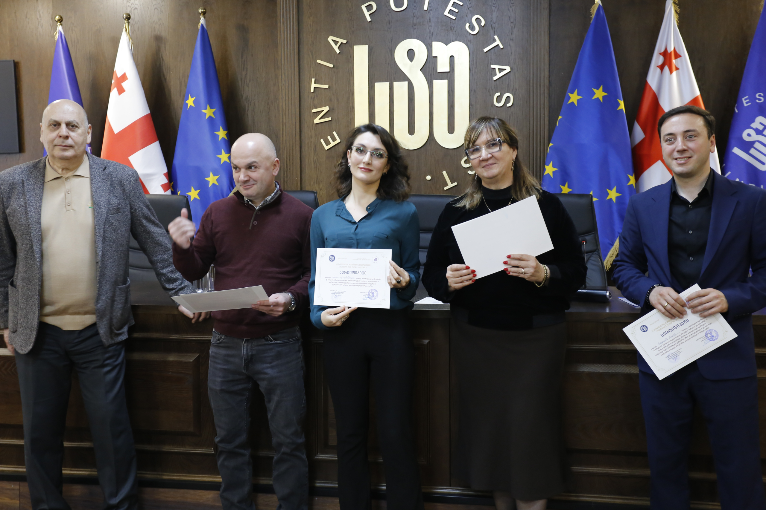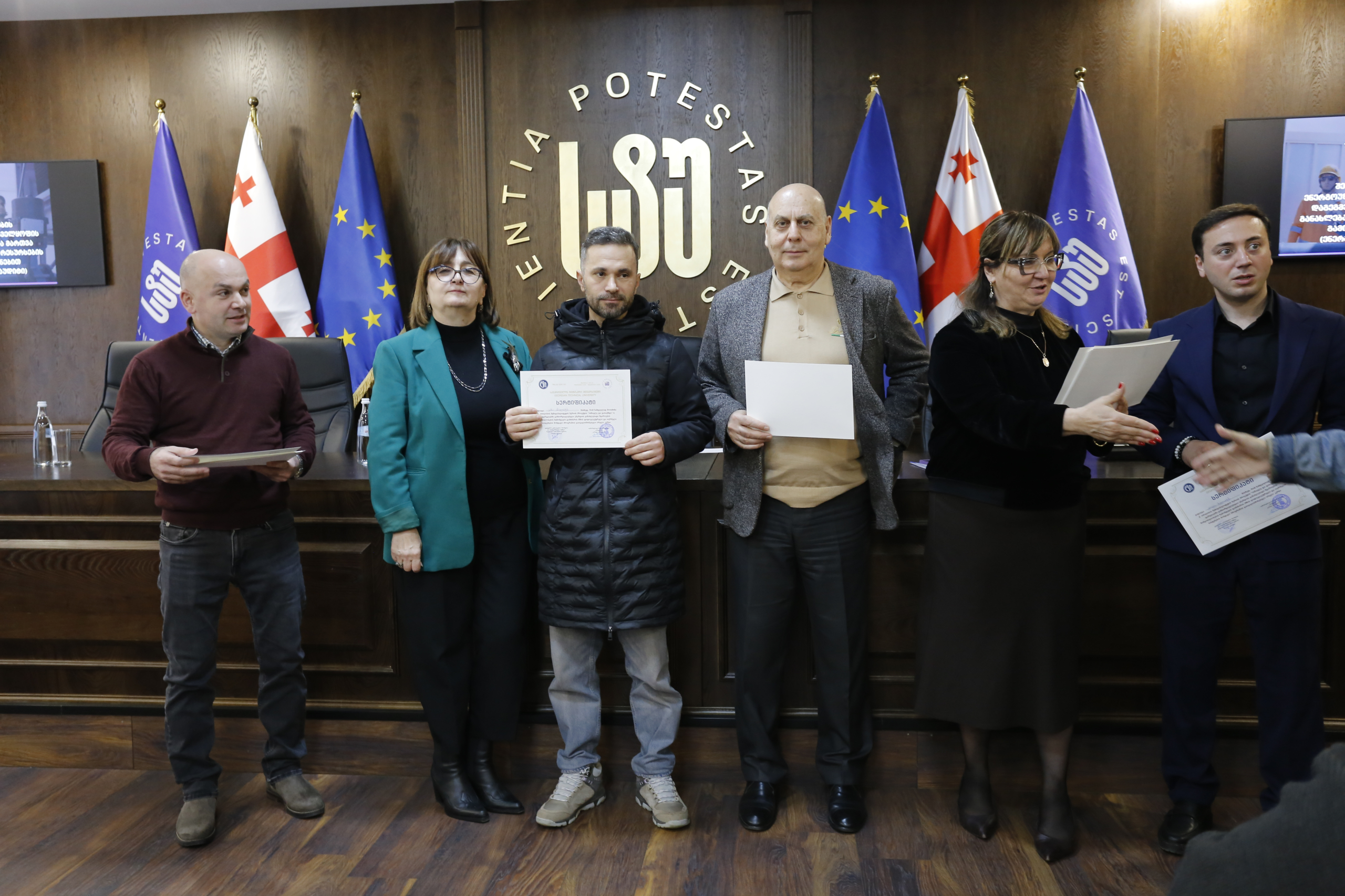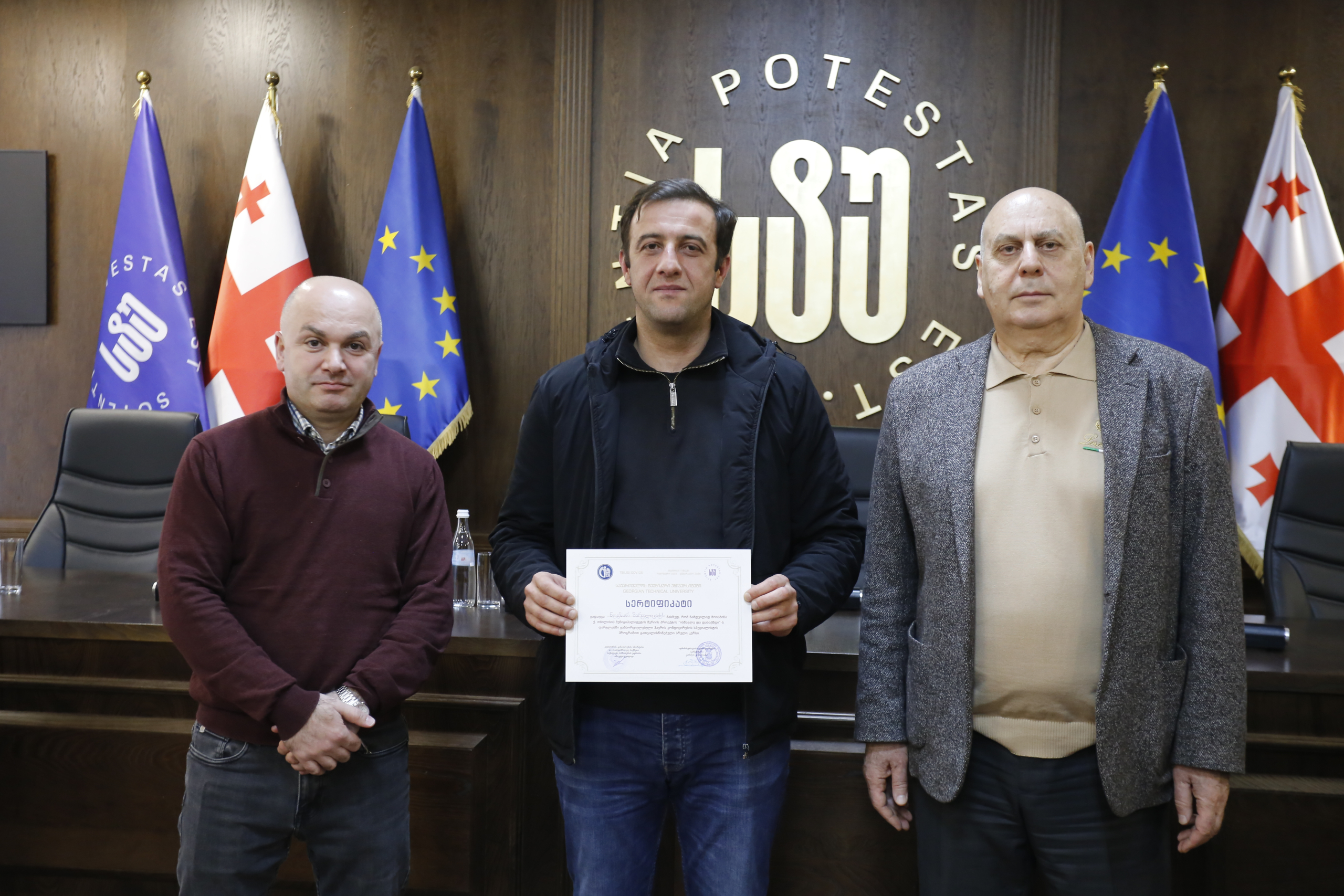 მათ სერტიფიკატები გადასცეს საქართველოს ტექნიკური უნივერსიტეტის სამეთვალყურეო საბჭოს პრეზიდენტმა პროფესორმა ზურაბ გუდავაძემ, რექტორის მრჩეველმა ასოცირებულმა პროფესორმა რატი გურგენიძემ, სატრანსპორტო სისტემებისა და მექანიკის ინჟინერიის ფაკულტეტის დეკანმა ასოცირებულმა პროფესორმა ბორის გითოლენდიამ, ინფორმატიკისა და მართვის სისტემების ფაკულტეტის დეკანმა პროფესორმა თალიკო ჟვანიამ და ენერგეტიკის ფაკულტეტის დეკანმა პროფესორმა ქეთევან ქუთათელაძემ.
