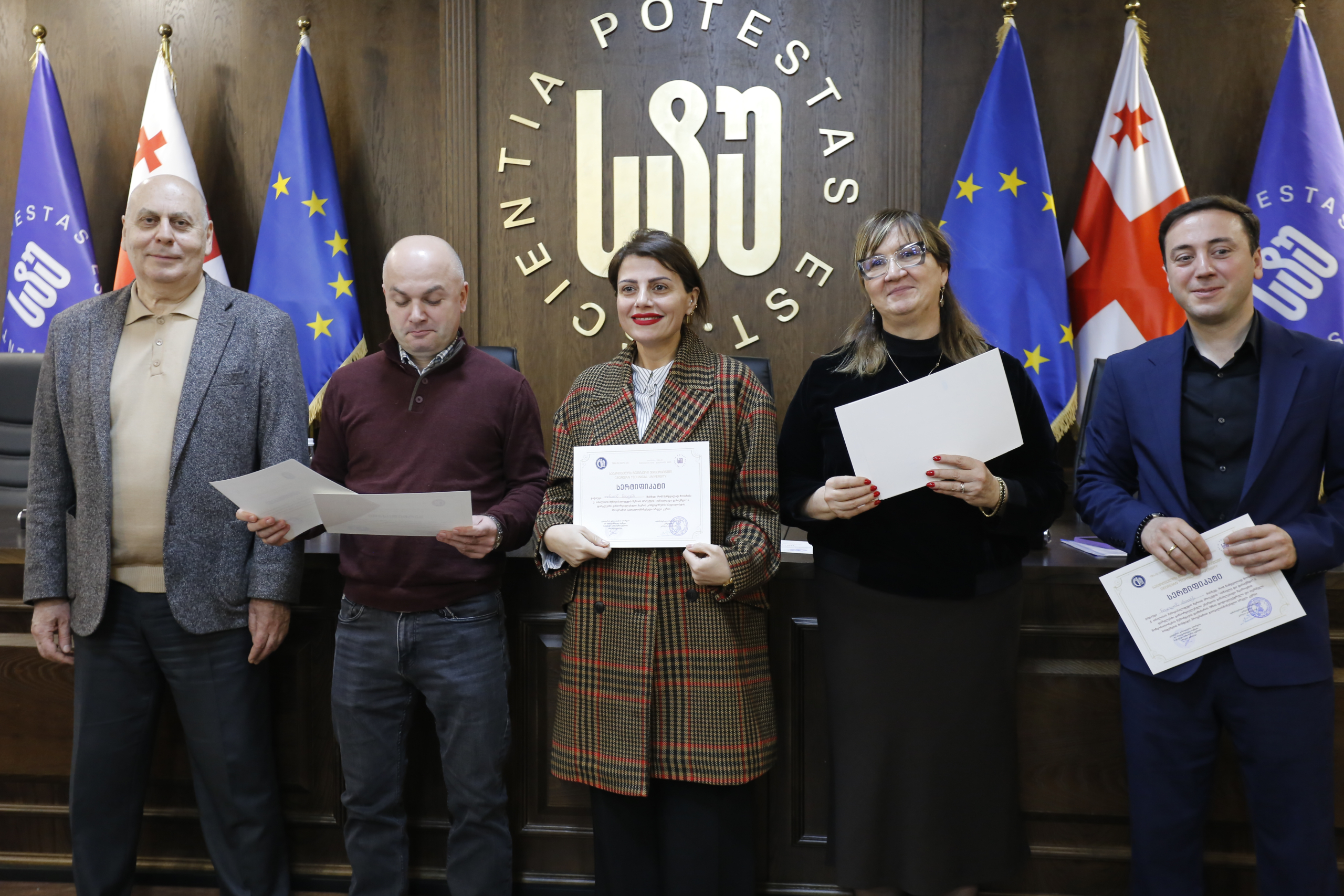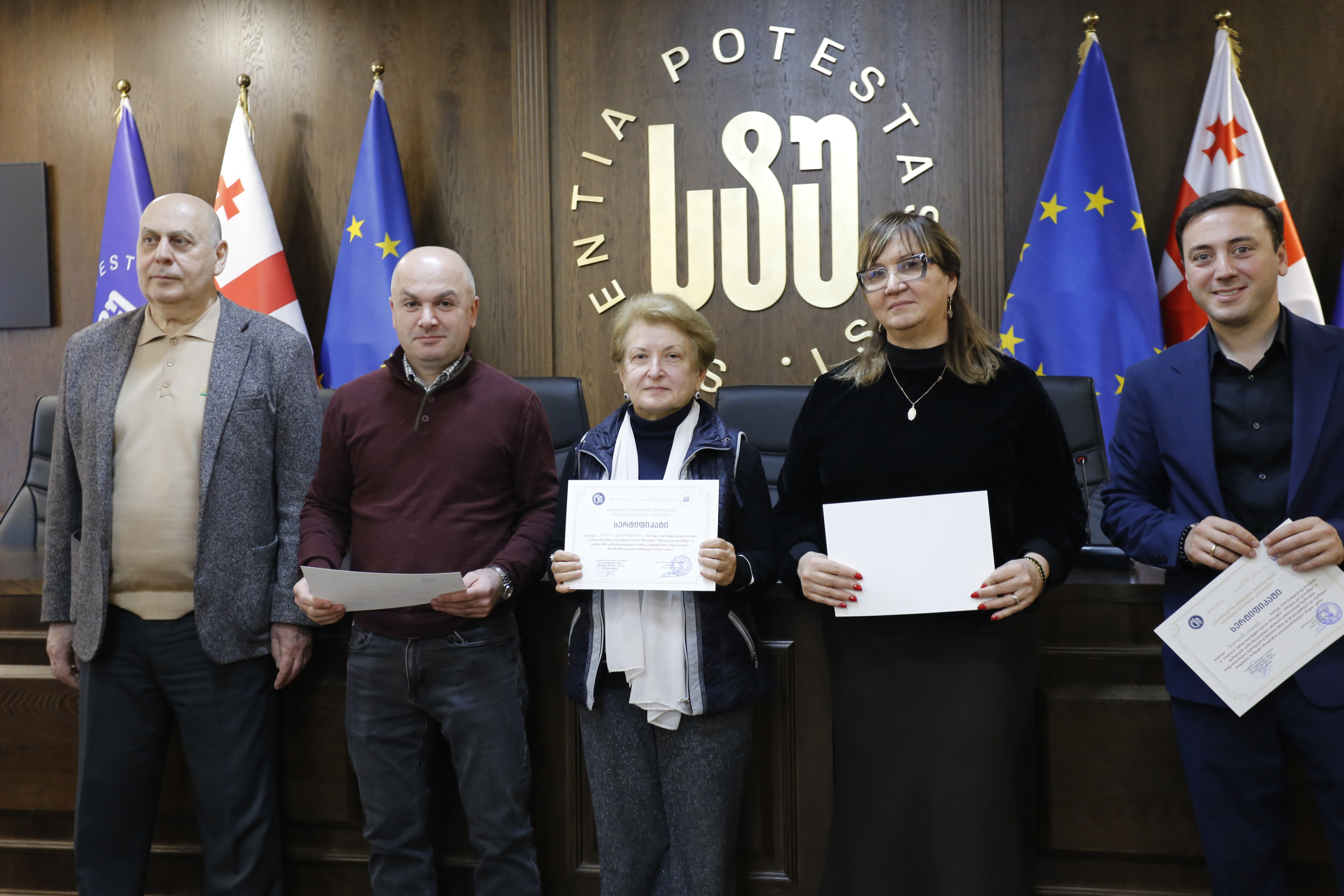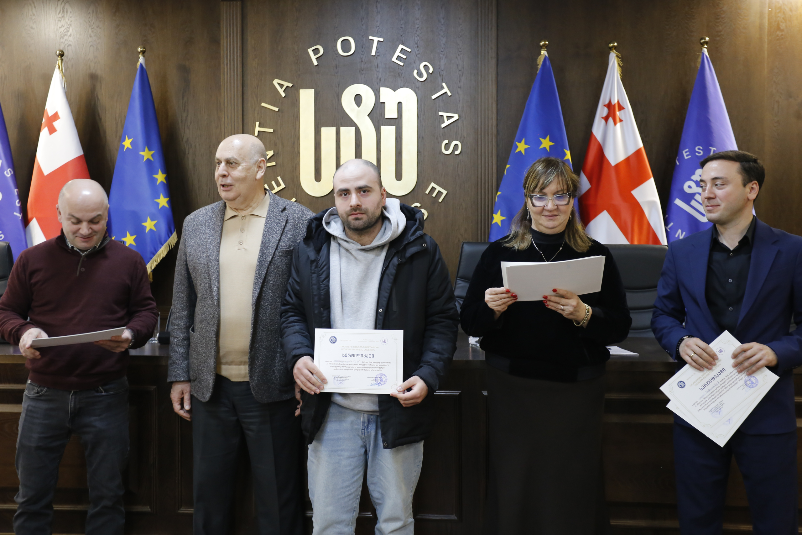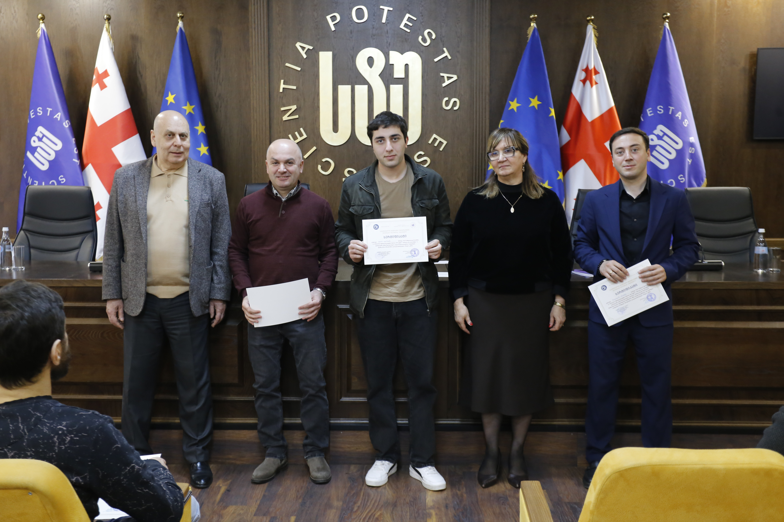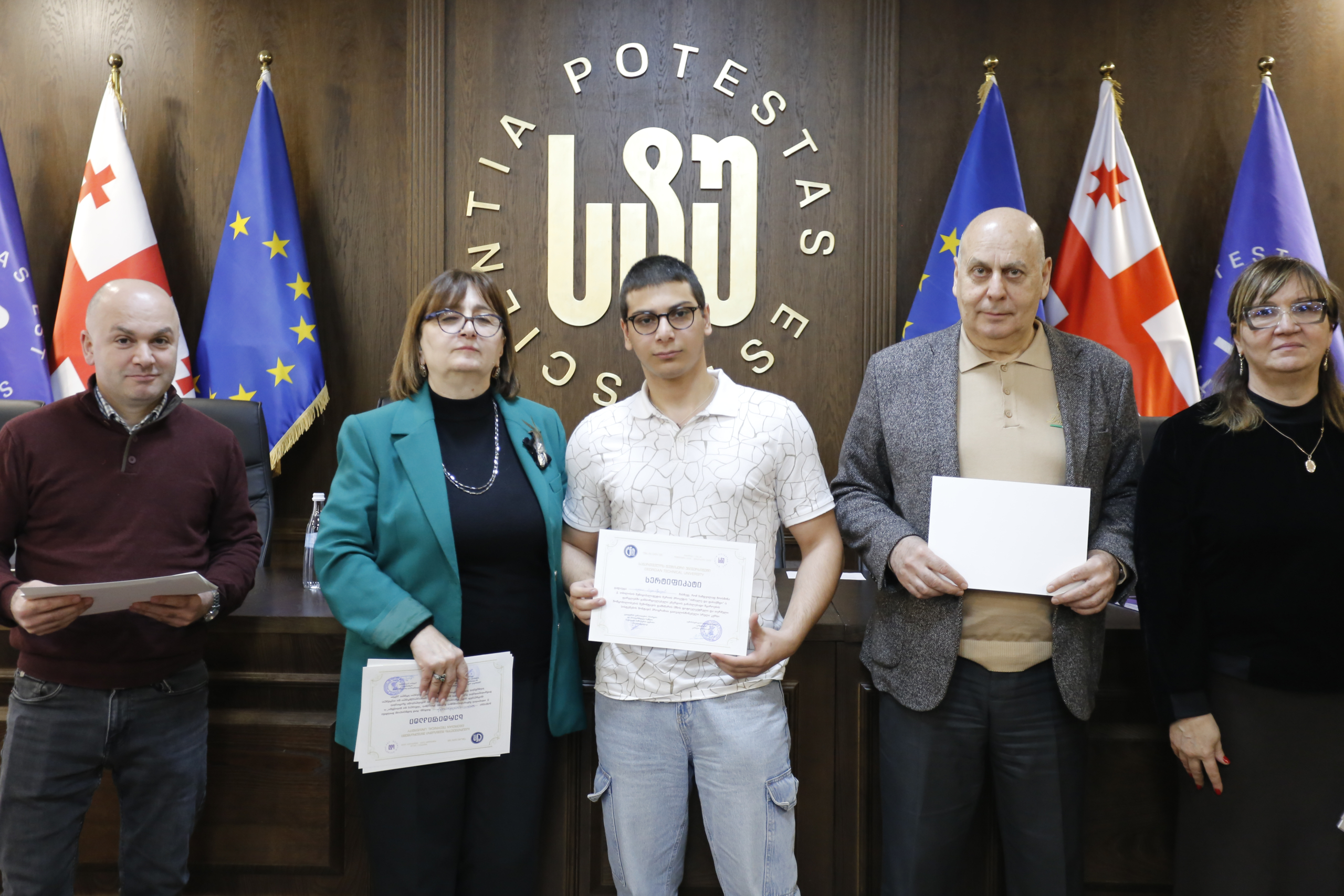 მათ სერტიფიკატები გადასცეს საქართველოს ტექნიკური უნივერსიტეტის სამეთვალყურეო საბჭოს პრეზიდენტმა პროფესორმა ზურაბ გუდავაძემ, რექტორის მრჩეველმა ასოცირებულმა პროფესორმა რატი გურგენიძემ, სატრანსპორტო სისტემებისა და მექანიკის ინჟინერიის ფაკულტეტის დეკანმა ასოცირებულმა პროფესორმა ბორის გითოლენდიამ, ინფორმატიკისა და მართვის სისტემების ფაკულტეტის დეკანმა პროფესორმა თალიკო ჟვანიამ და ენერგეტიკის ფაკულტეტის დეკანმა პროფესორმა ქეთევან ქუთათელაძემ.