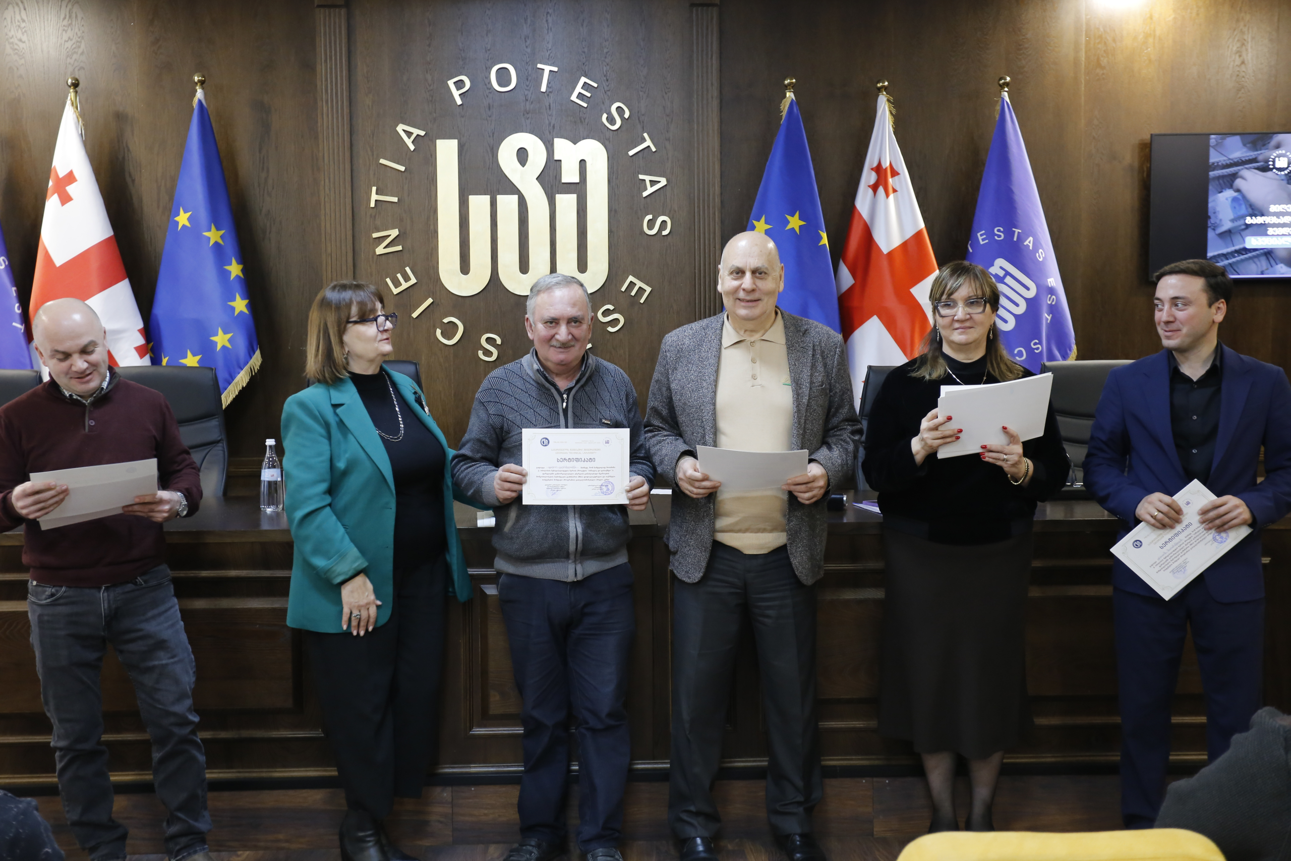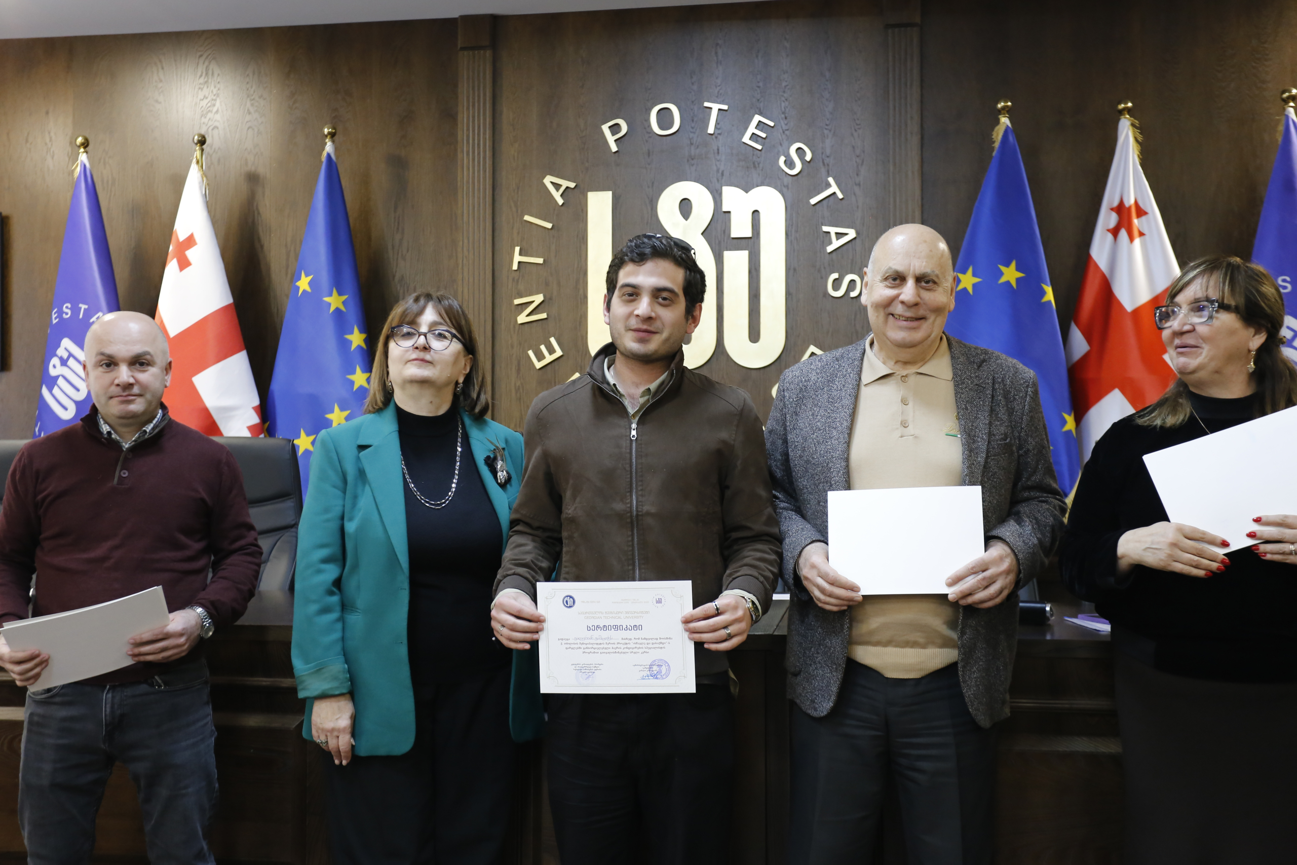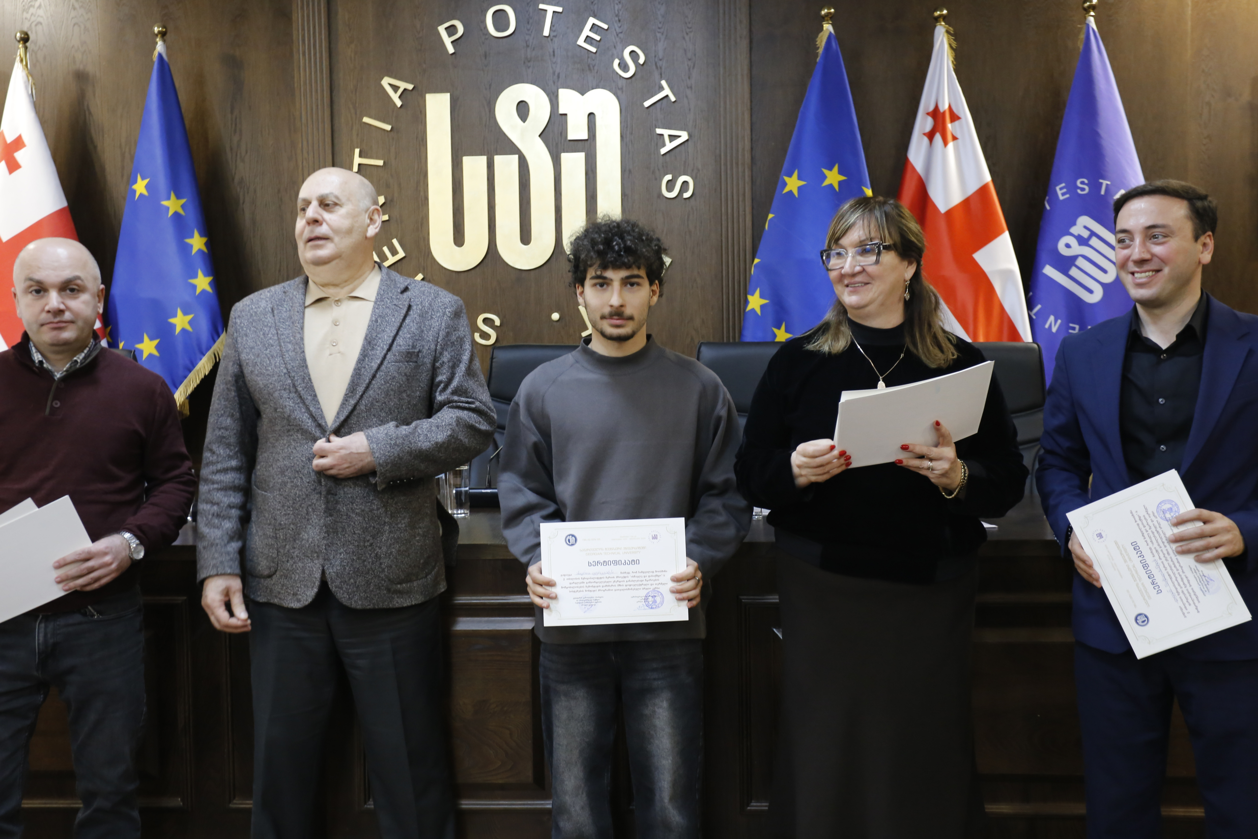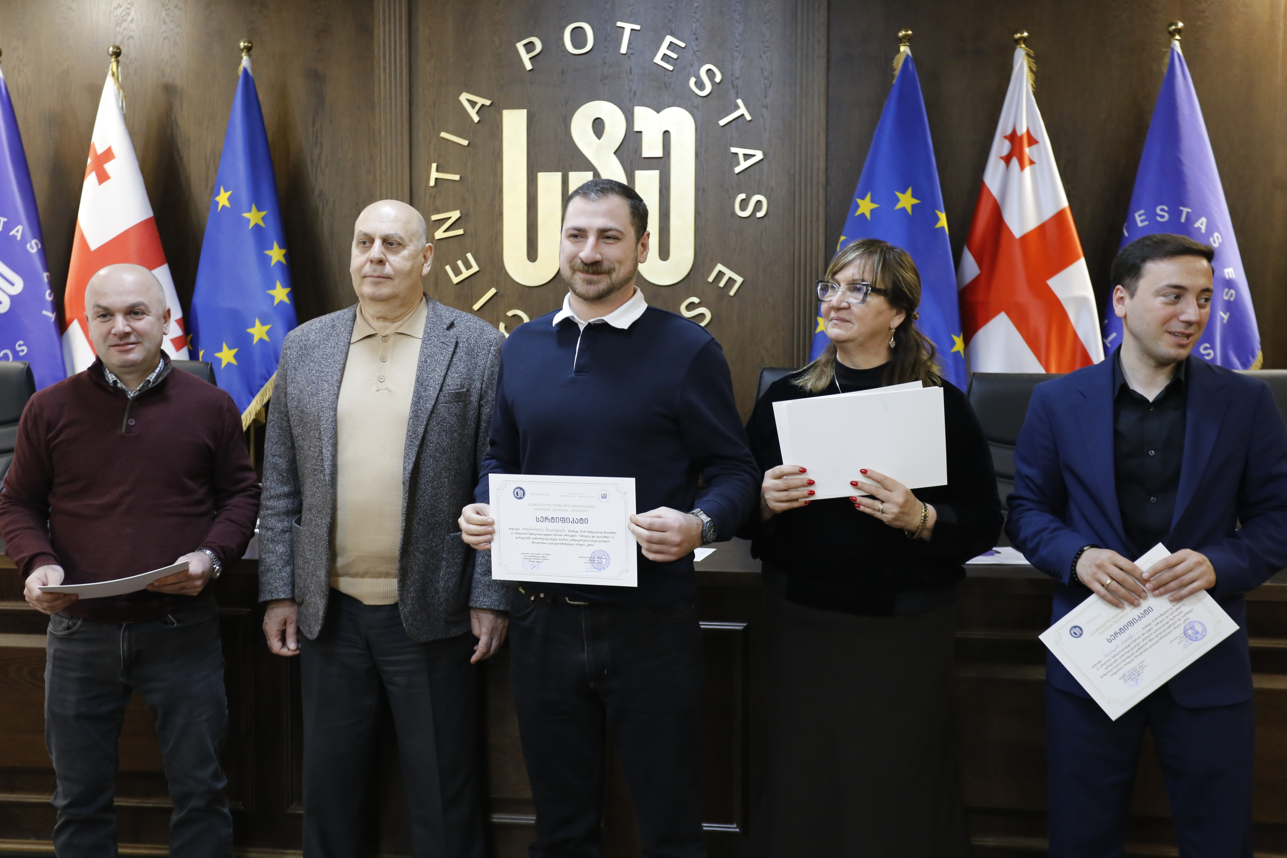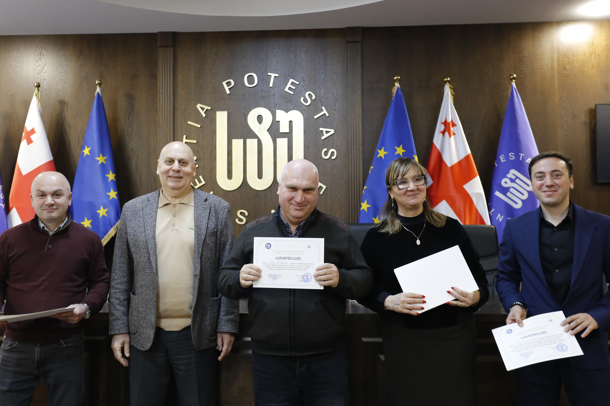 მათ სერტიფიკატები გადასცეს საქართველოს ტექნიკური უნივერსიტეტის სამეთვალყურეო საბჭოს პრეზიდენტმა პროფესორმა ზურაბ გუდავაძემ, რექტორის მრჩეველმა ასოცირებულმა პროფესორმა რატი გურგენიძემ, სატრანსპორტო სისტემებისა და მექანიკის ინჟინერიის ფაკულტეტის დეკანმა ასოცირებულმა პროფესორმა ბორის გითოლენდიამ, ინფორმატიკისა და მართვის სისტემების ფაკულტეტის დეკანმა პროფესორმა თალიკო ჟვანიამ და ენერგეტიკის ფაკულტეტის დეკანმა პროფესორმა ქეთევან ქუთათელაძემ.