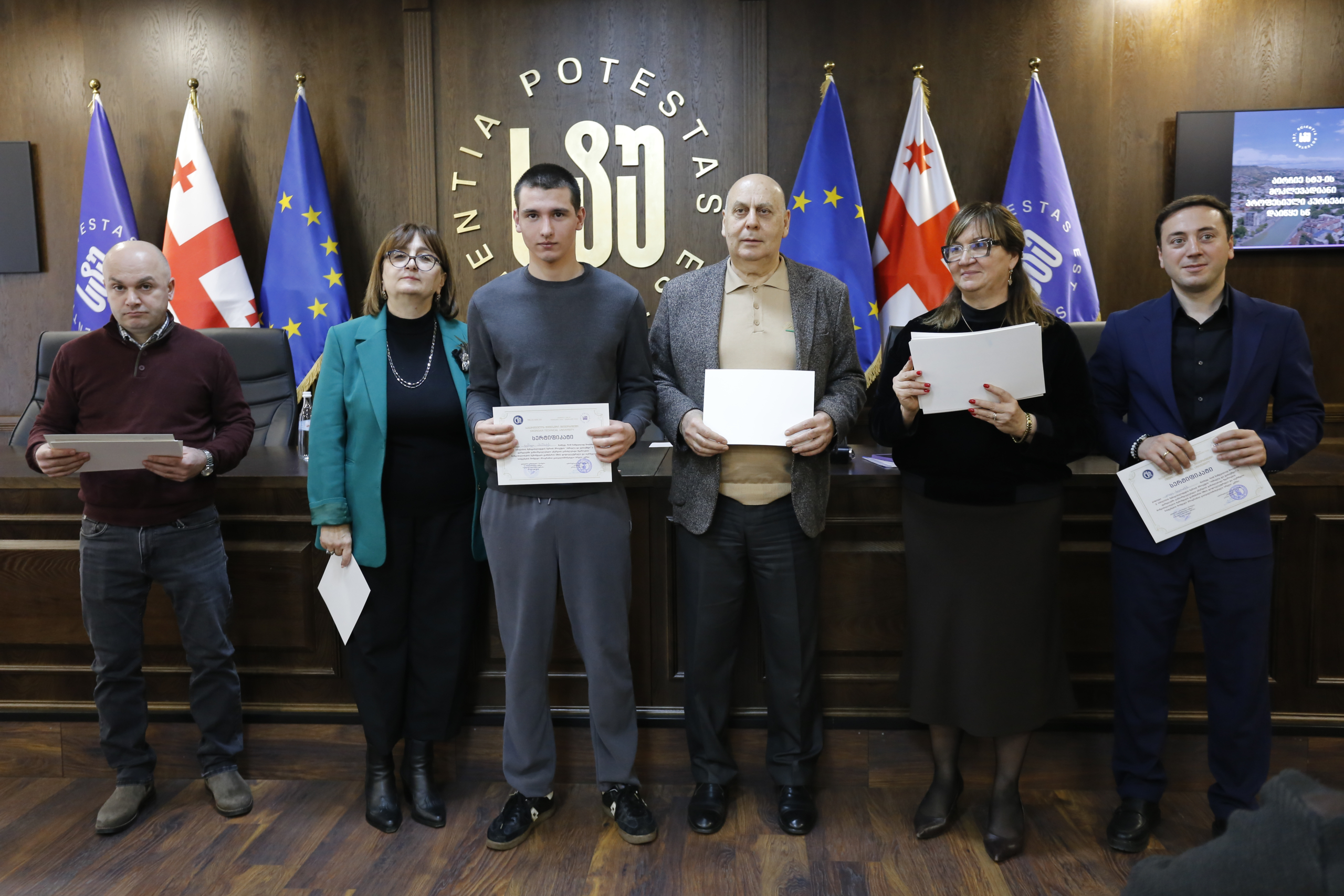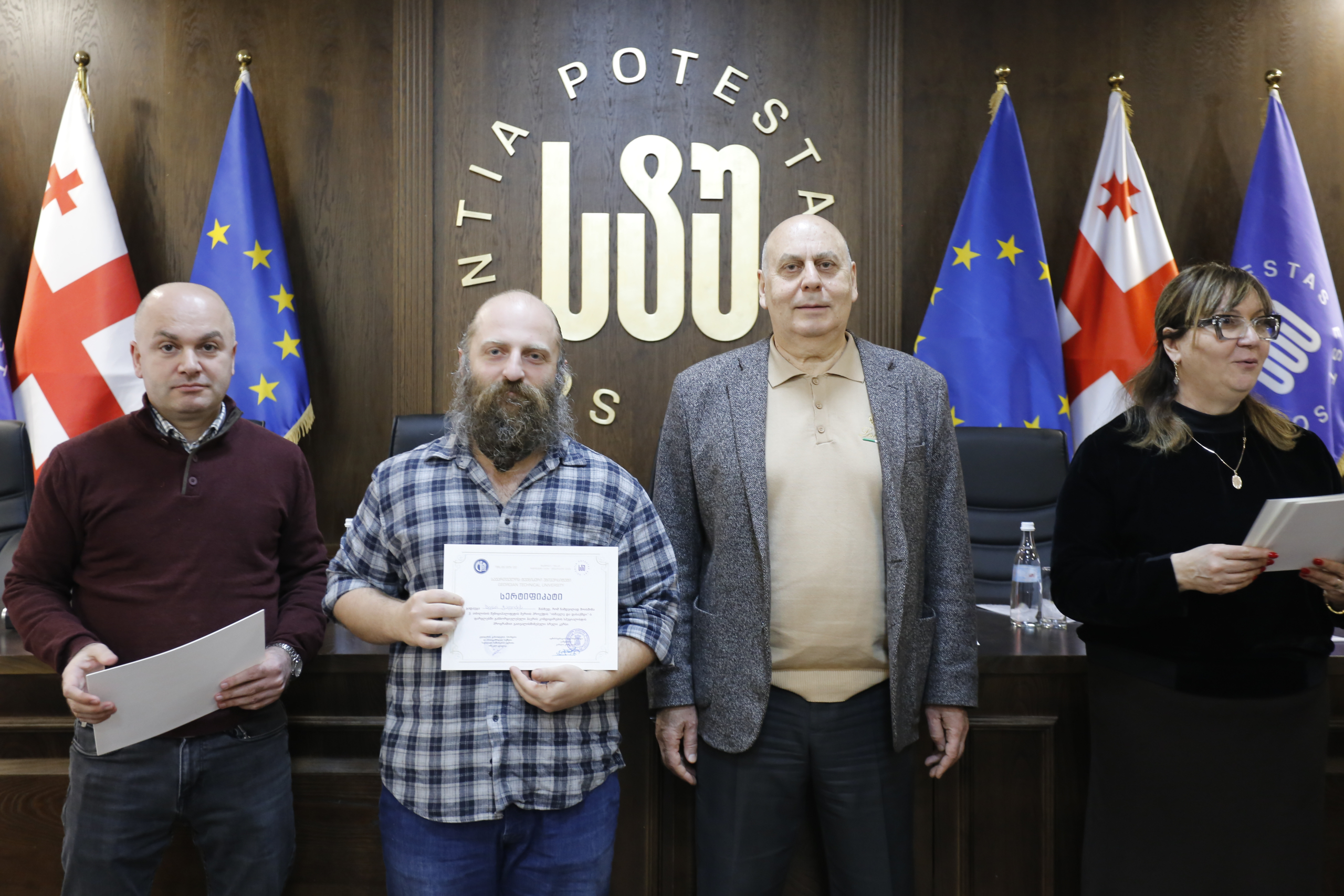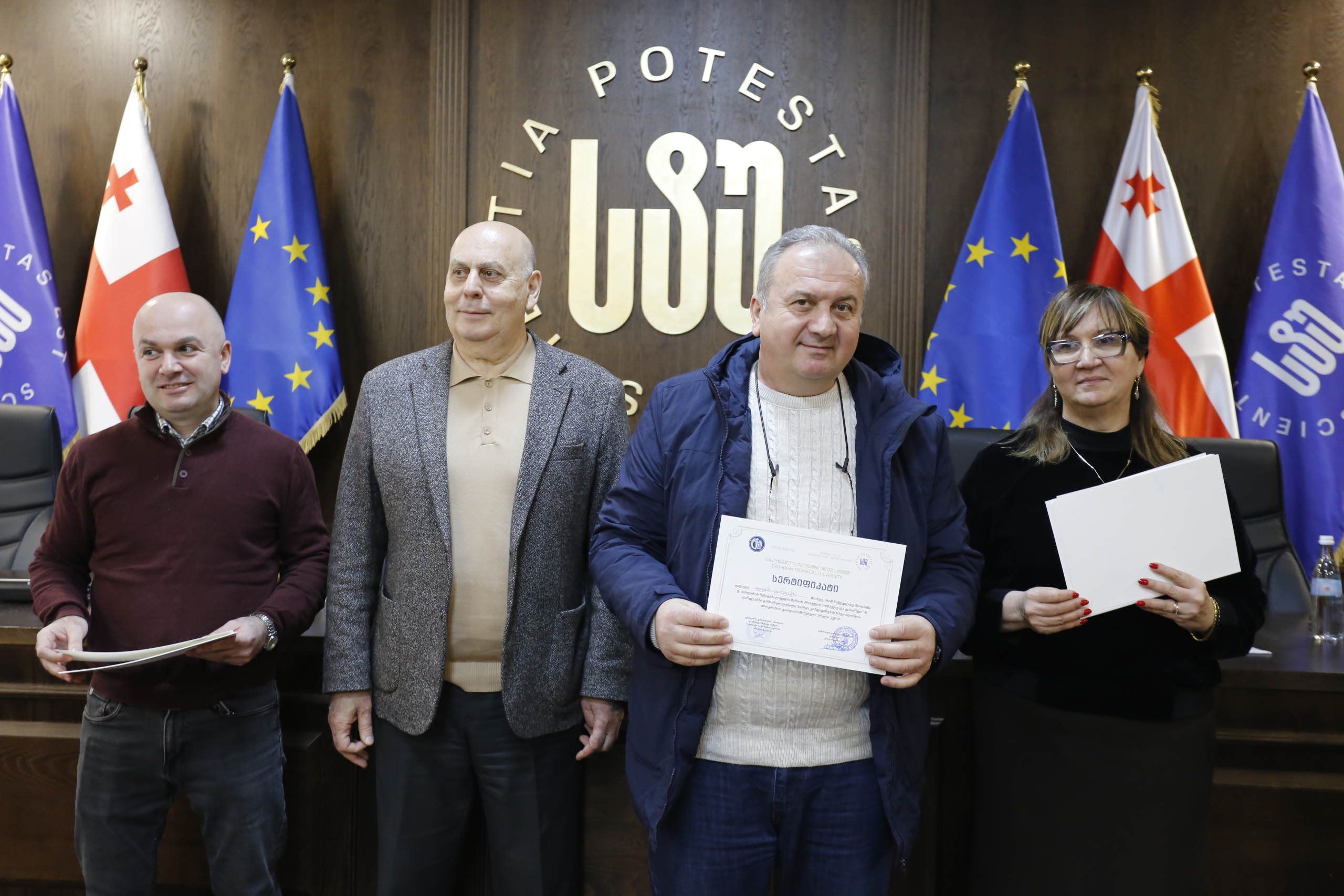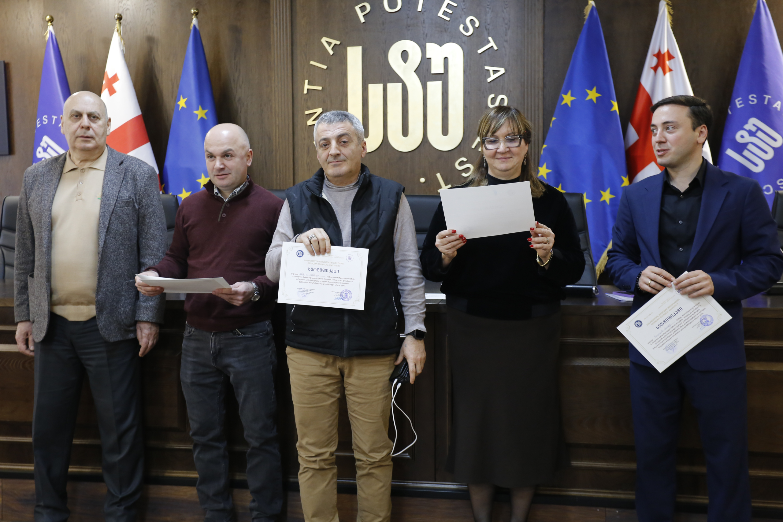 მათ სერტიფიკატები გადასცეს საქართველოს ტექნიკური უნივერსიტეტის სამეთვალყურეო საბჭოს პრეზიდენტმა პროფესორმა ზურაბ გუდავაძემ, რექტორის მრჩეველმა ასოცირებულმა პროფესორმა რატი გურგენიძემ, სატრანსპორტო სისტემებისა და მექანიკის ინჟინერიის ფაკულტეტის დეკანმა ასოცირებულმა პროფესორმა ბორის გითოლენდიამ, ინფორმატიკისა და მართვის სისტემების ფაკულტეტის დეკანმა პროფესორმა თალიკო ჟვანიამ და ენერგეტიკის ფაკულტეტის დეკანმა პროფესორმა ქეთევან ქუთათელაძემ.