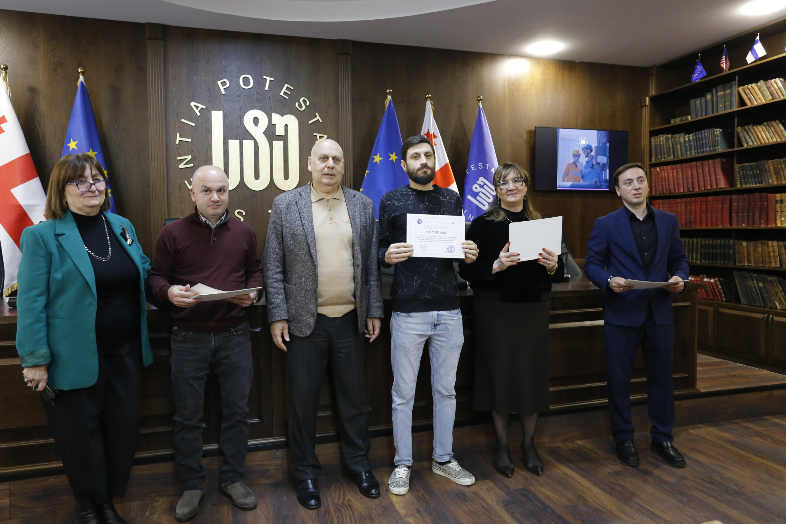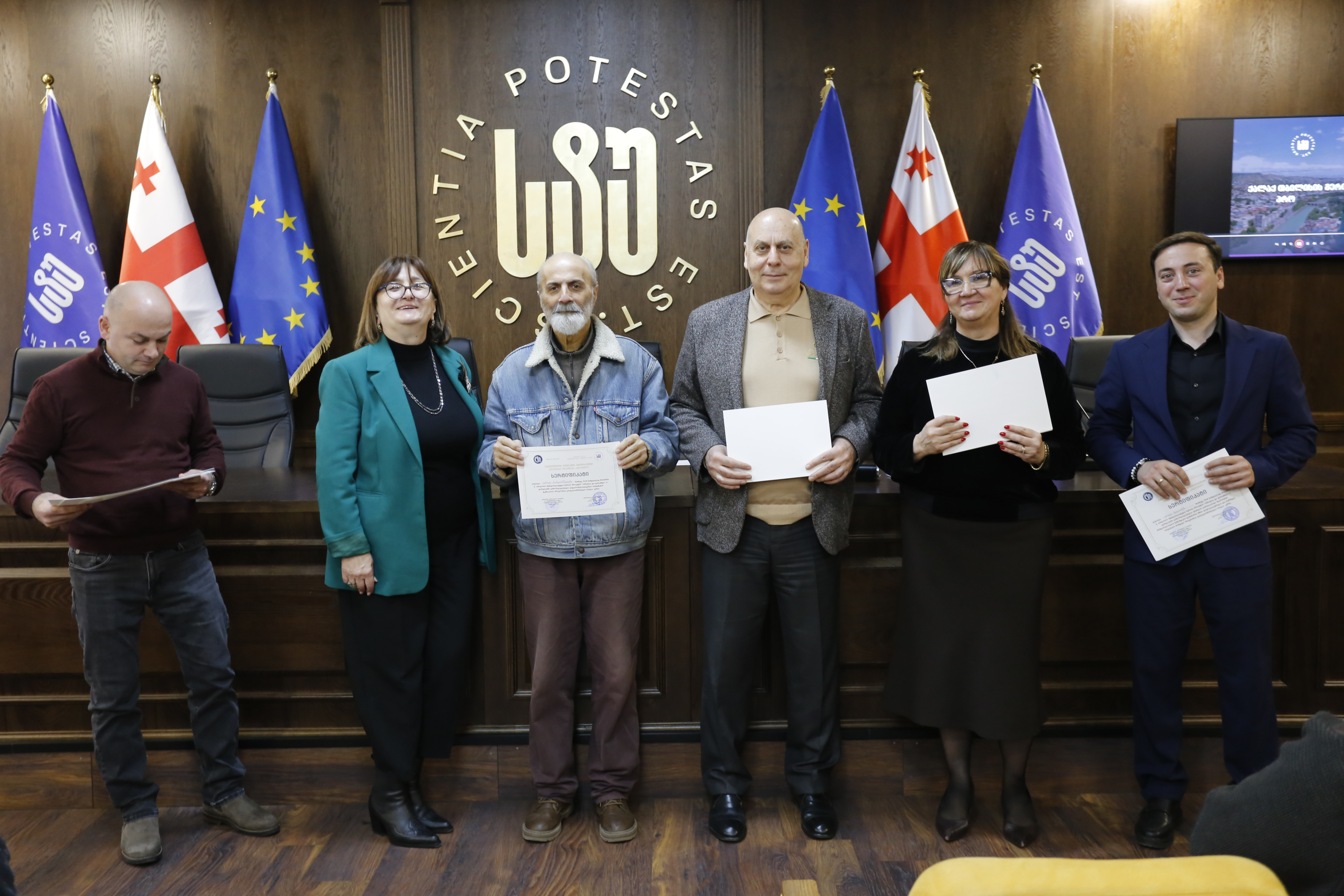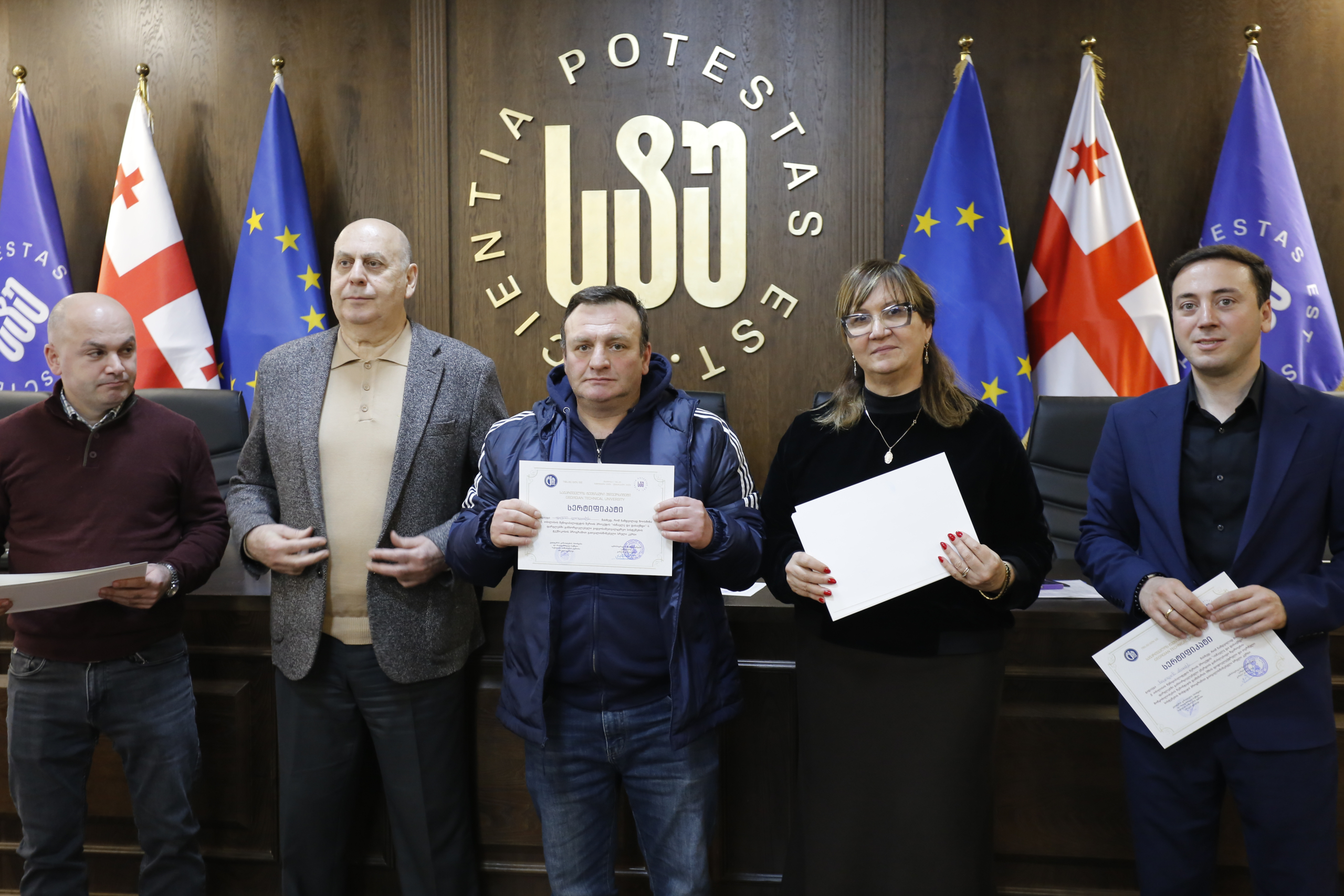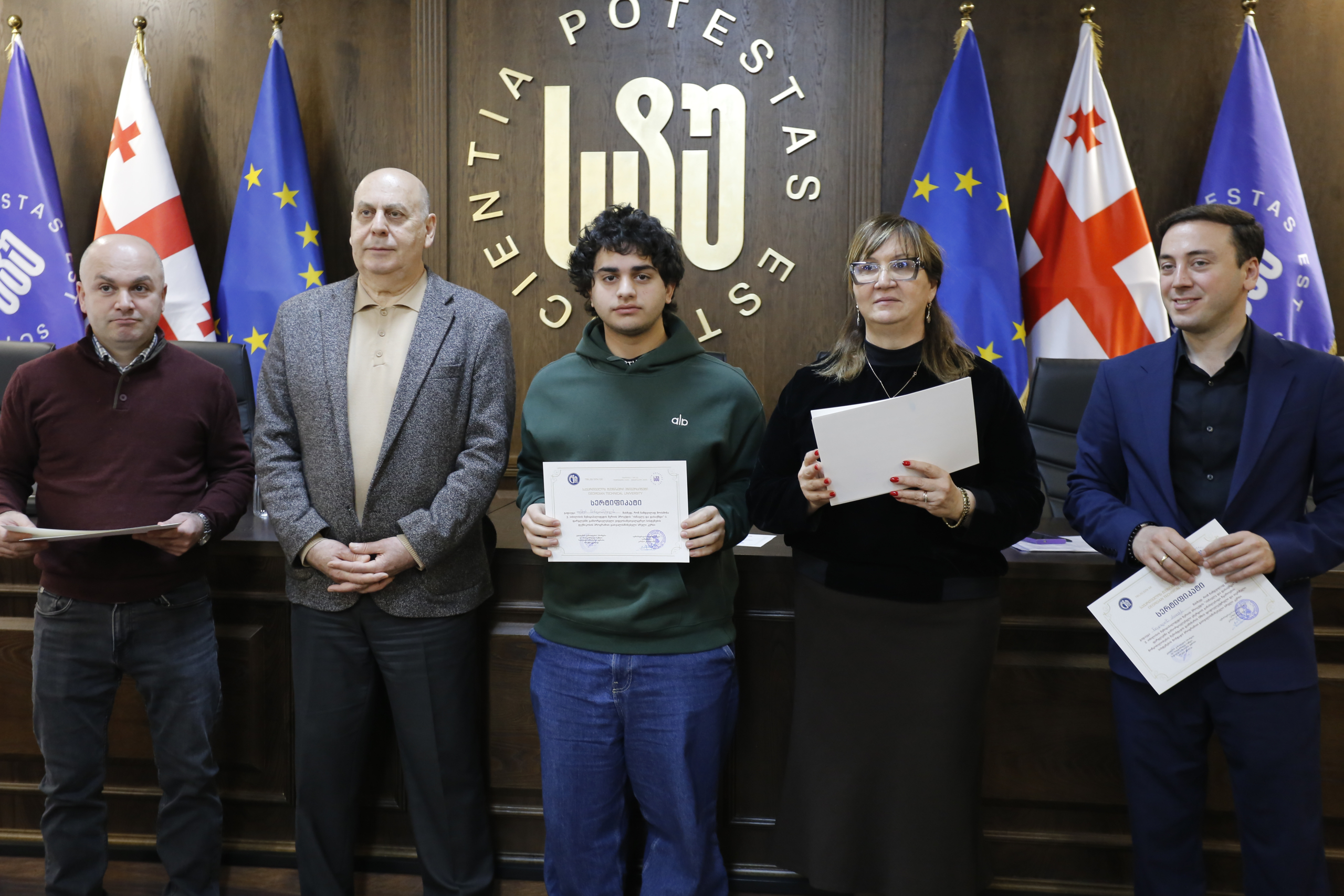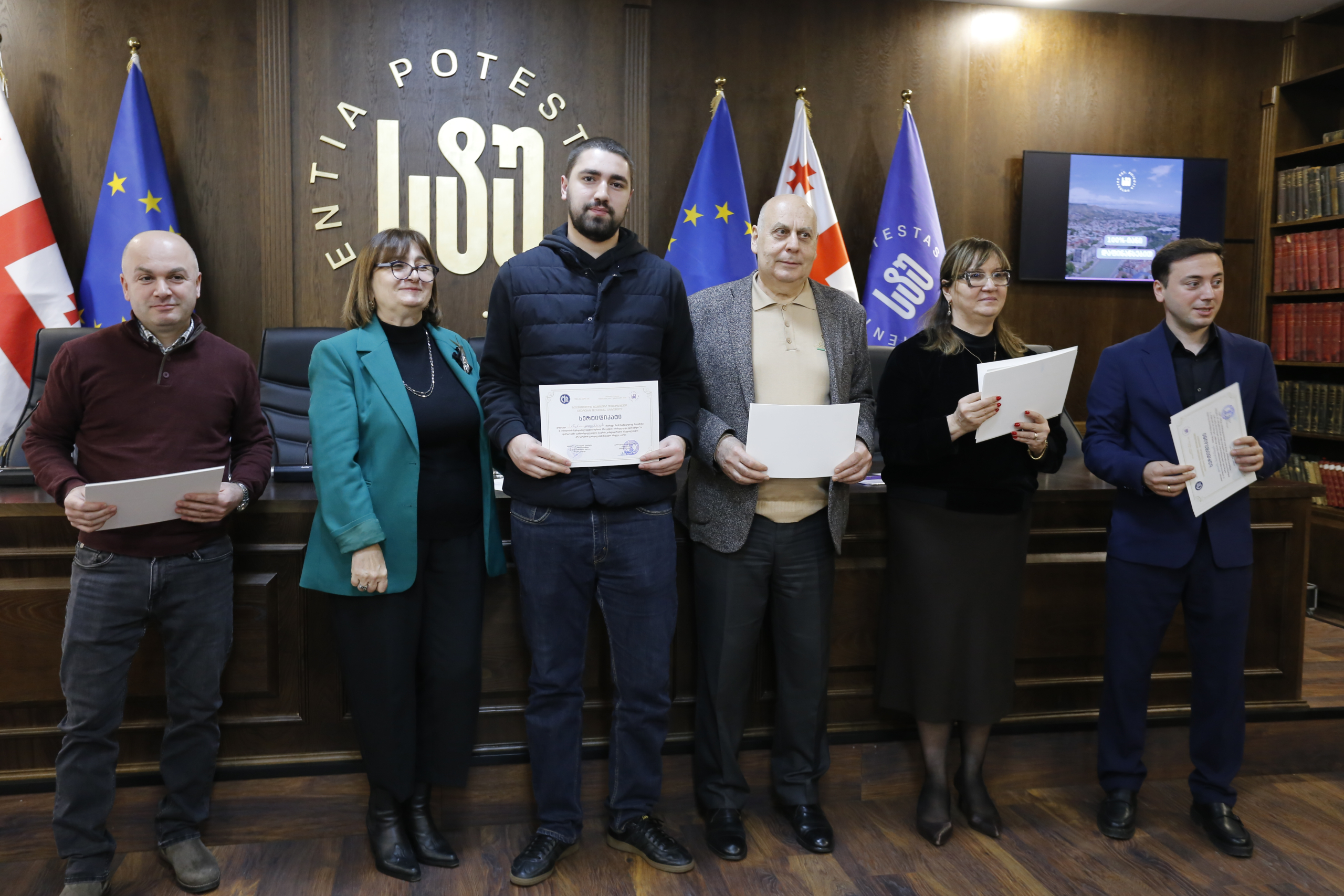 მათ სერტიფიკატები გადასცეს საქართველოს ტექნიკური უნივერსიტეტის სამეთვალყურეო საბჭოს პრეზიდენტმა პროფესორმა ზურაბ გუდავაძემ, რექტორის მრჩეველმა ასოცირებულმა პროფესორმა რატი გურგენიძემ, სატრანსპორტო სისტემებისა და მექანიკის ინჟინერიის ფაკულტეტის დეკანმა ასოცირებულმა პროფესორმა ბორის გითოლენდიამ, ინფორმატიკისა და მართვის სისტემების ფაკულტეტის დეკანმა პროფესორმა თალიკო ჟვანიამ და ენერგეტიკის ფაკულტეტის დეკანმა პროფესორმა ქეთევან ქუთათელაძემ.
