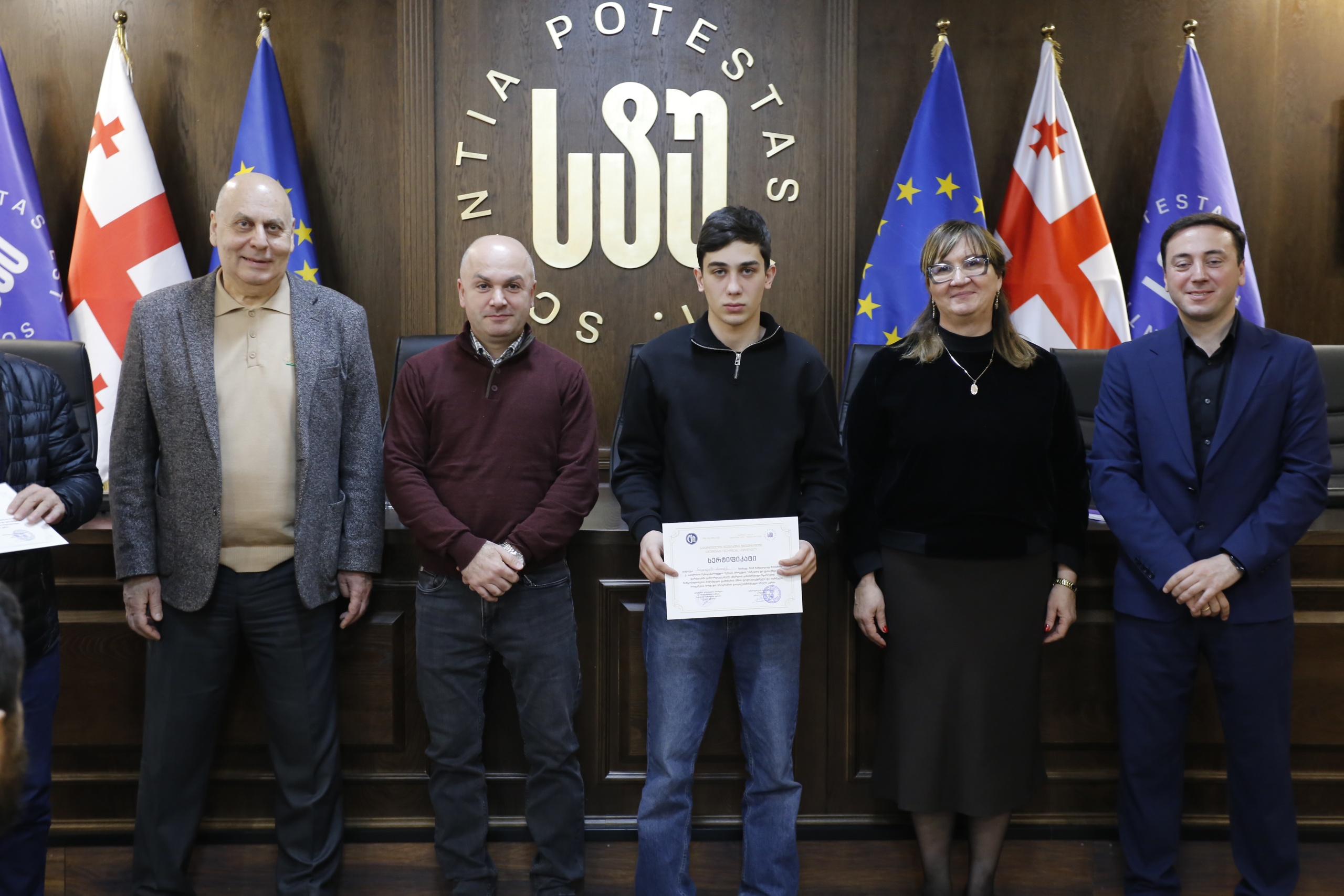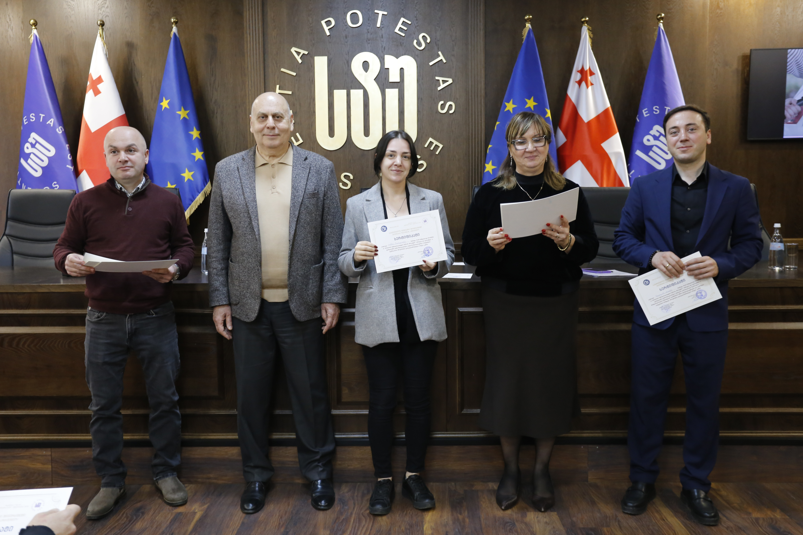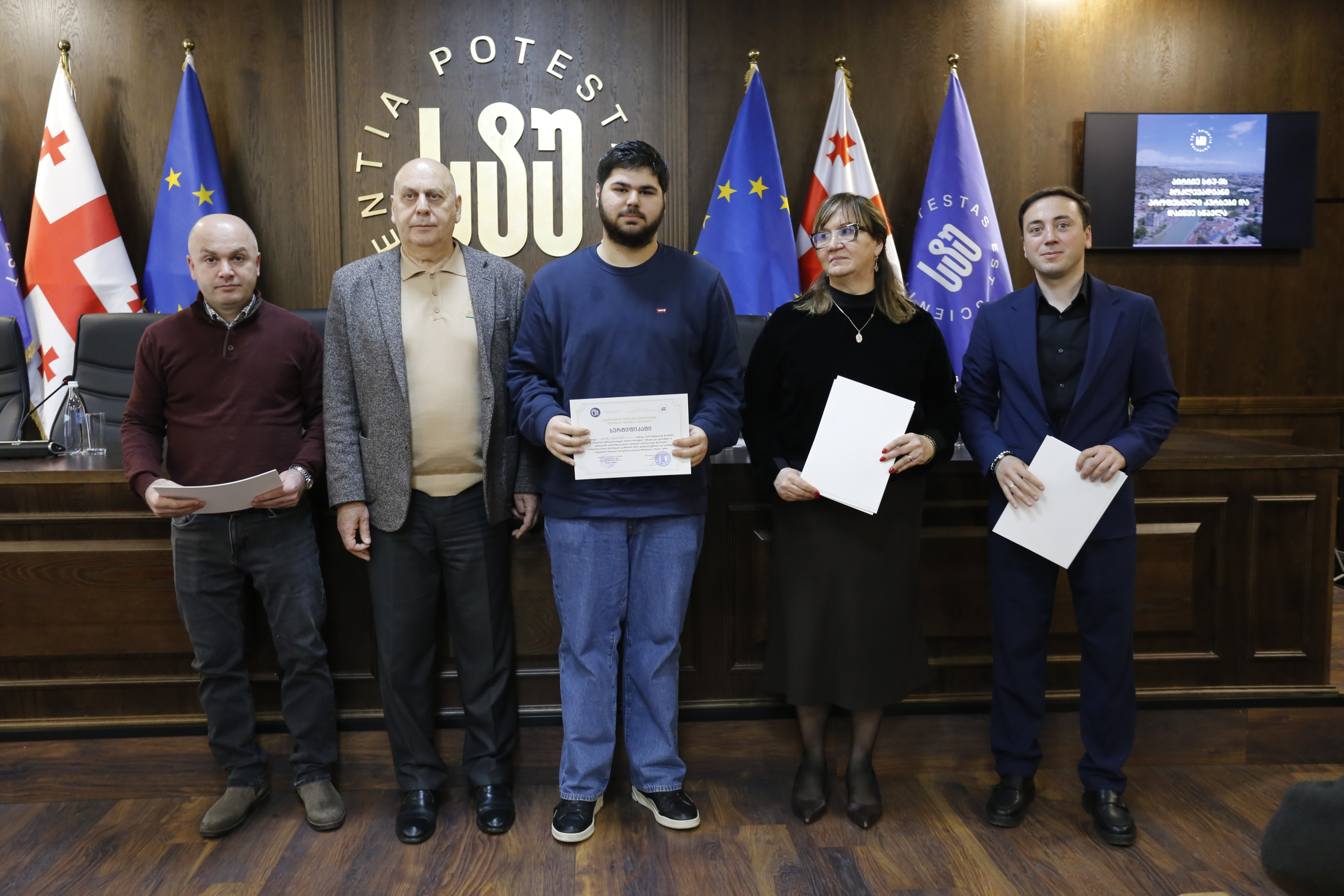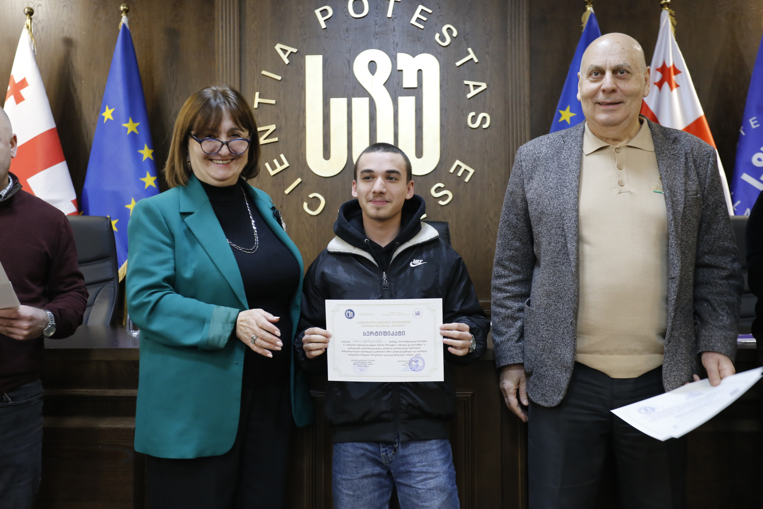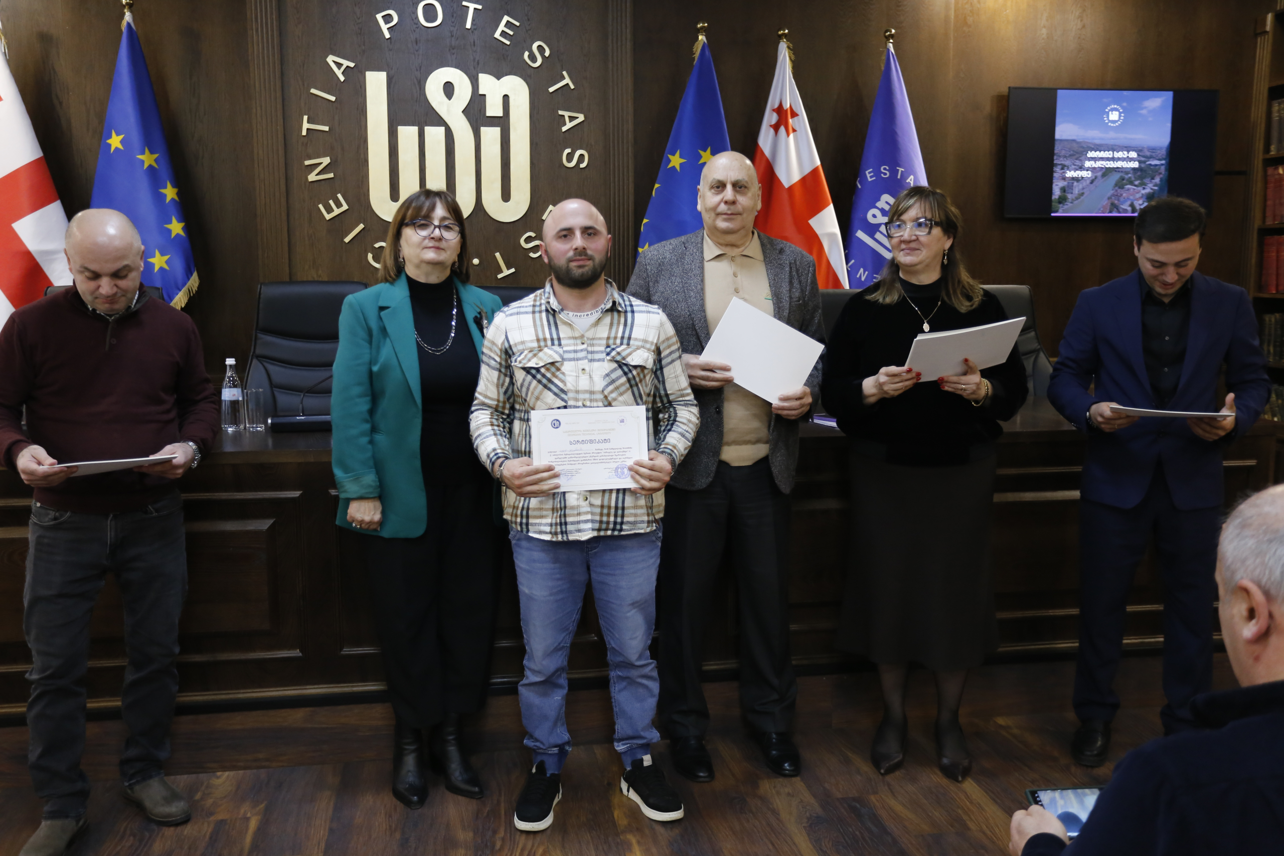 მათ სერტიფიკატები გადასცეს საქართველოს ტექნიკური უნივერსიტეტის სამეთვალყურეო საბჭოს პრეზიდენტმა პროფესორმა ზურაბ გუდავაძემ, რექტორის მრჩეველმა ასოცირებულმა პროფესორმა რატი გურგენიძემ, სატრანსპორტო სისტემებისა და მექანიკის ინჟინერიის ფაკულტეტის დეკანმა ასოცირებულმა პროფესორმა ბორის გითოლენდიამ, ინფორმატიკისა და მართვის სისტემების ფაკულტეტის დეკანმა პროფესორმა თალიკო ჟვანიამ და ენერგეტიკის ფაკულტეტის დეკანმა პროფესორმა ქეთევან ქუთათელაძემ.
