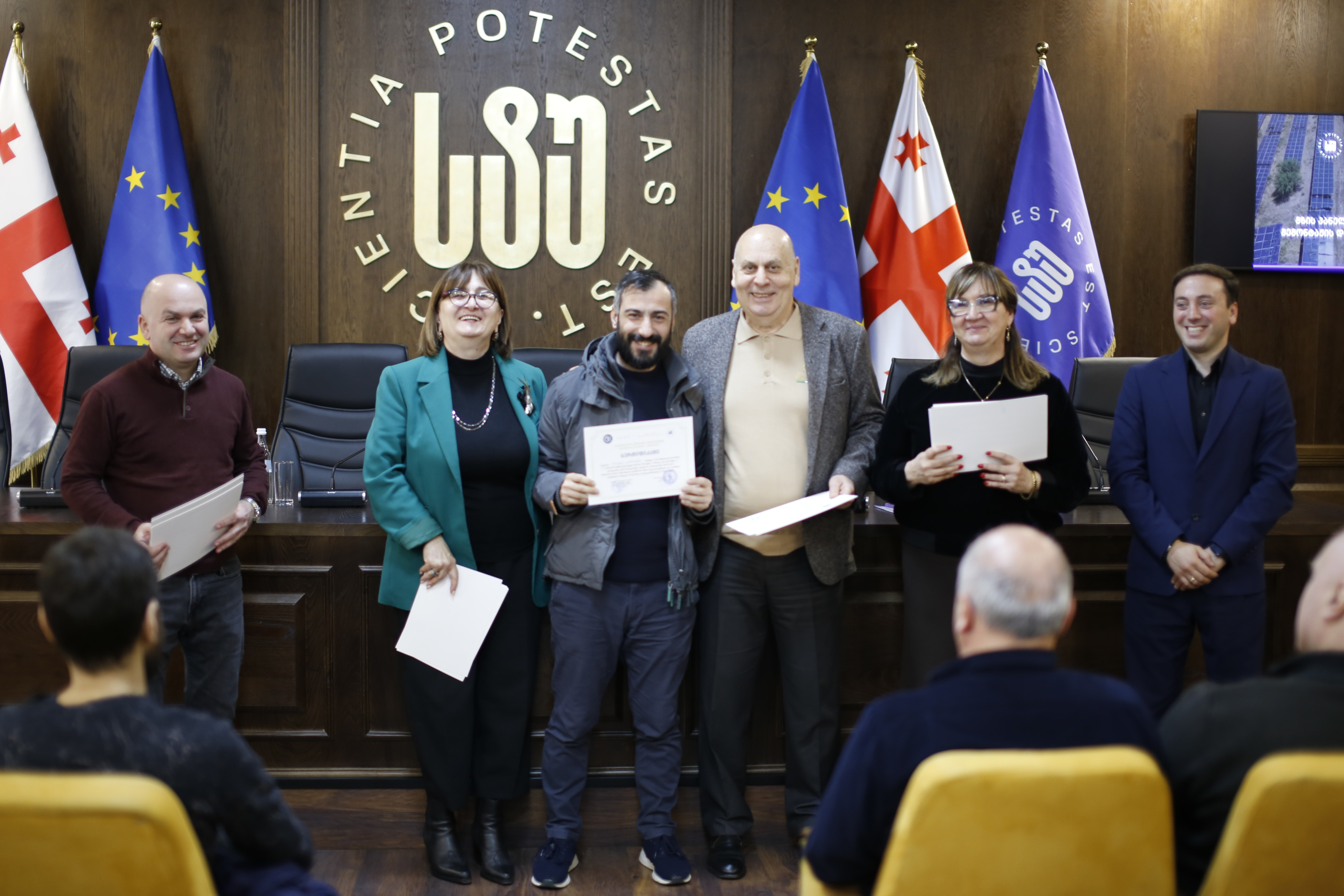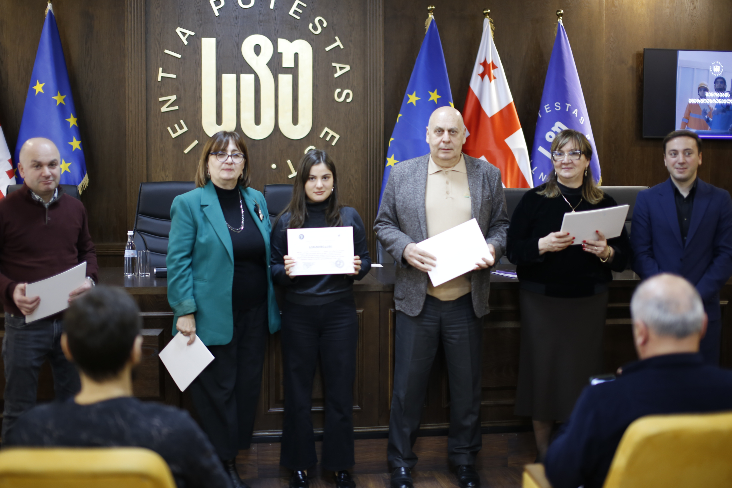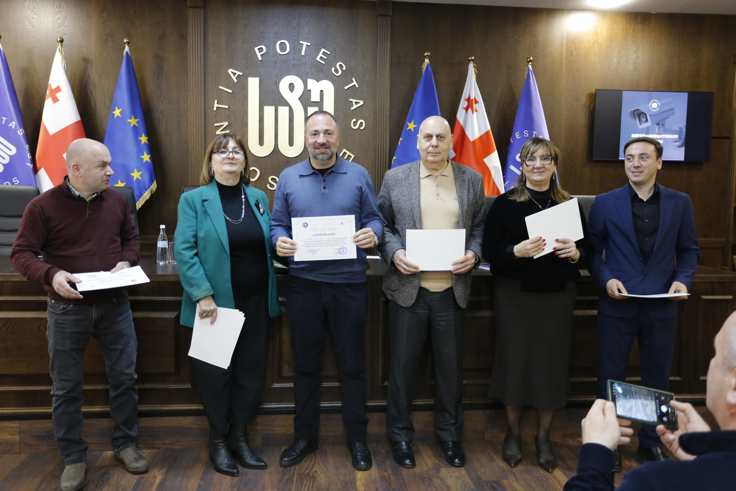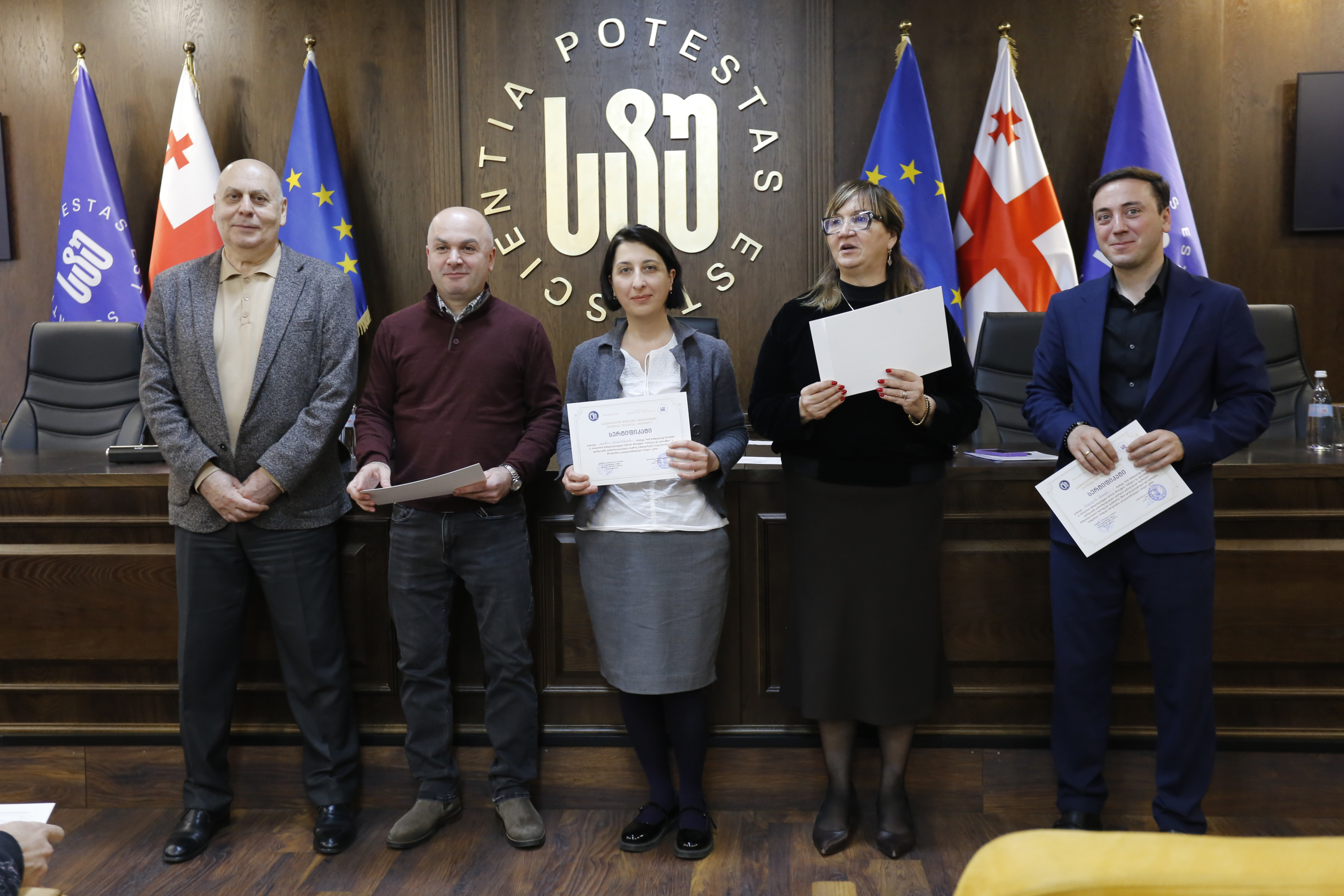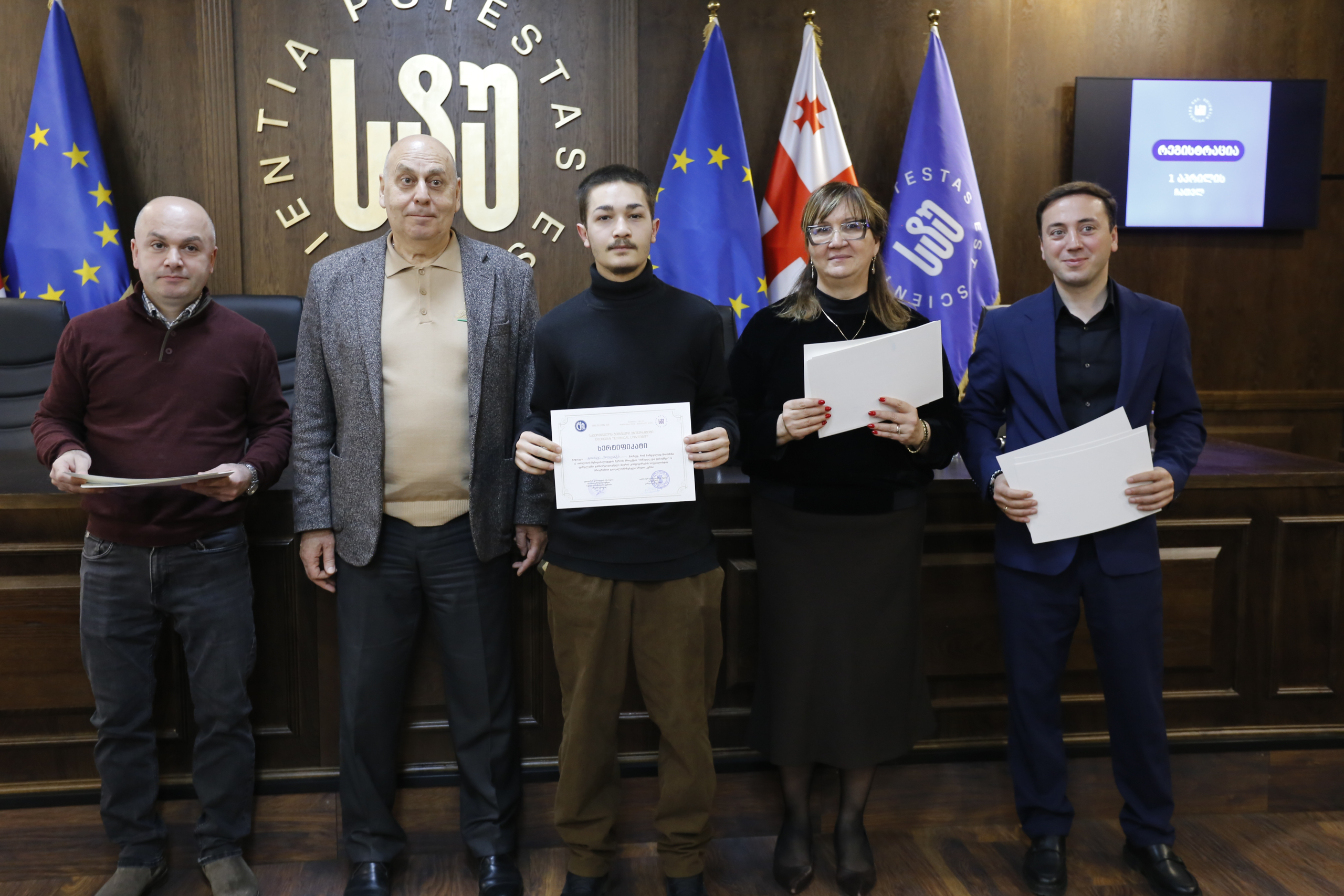 მათ სერტიფიკატები გადასცეს საქართველოს ტექნიკური უნივერსიტეტის სამეთვალყურეო საბჭოს პრეზიდენტმა პროფესორმა ზურაბ გუდავაძემ, რექტორის მრჩეველმა ასოცირებულმა პროფესორმა რატი გურგენიძემ, სატრანსპორტო სისტემებისა და მექანიკის ინჟინერიის ფაკულტეტის დეკანმა ასოცირებულმა პროფესორმა ბორის გითოლენდიამ, ინფორმატიკისა და მართვის სისტემების ფაკულტეტის დეკანმა პროფესორმა თალიკო ჟვანიამ და ენერგეტიკის ფაკულტეტის დეკანმა პროფესორმა ქეთევან ქუთათელაძემ.