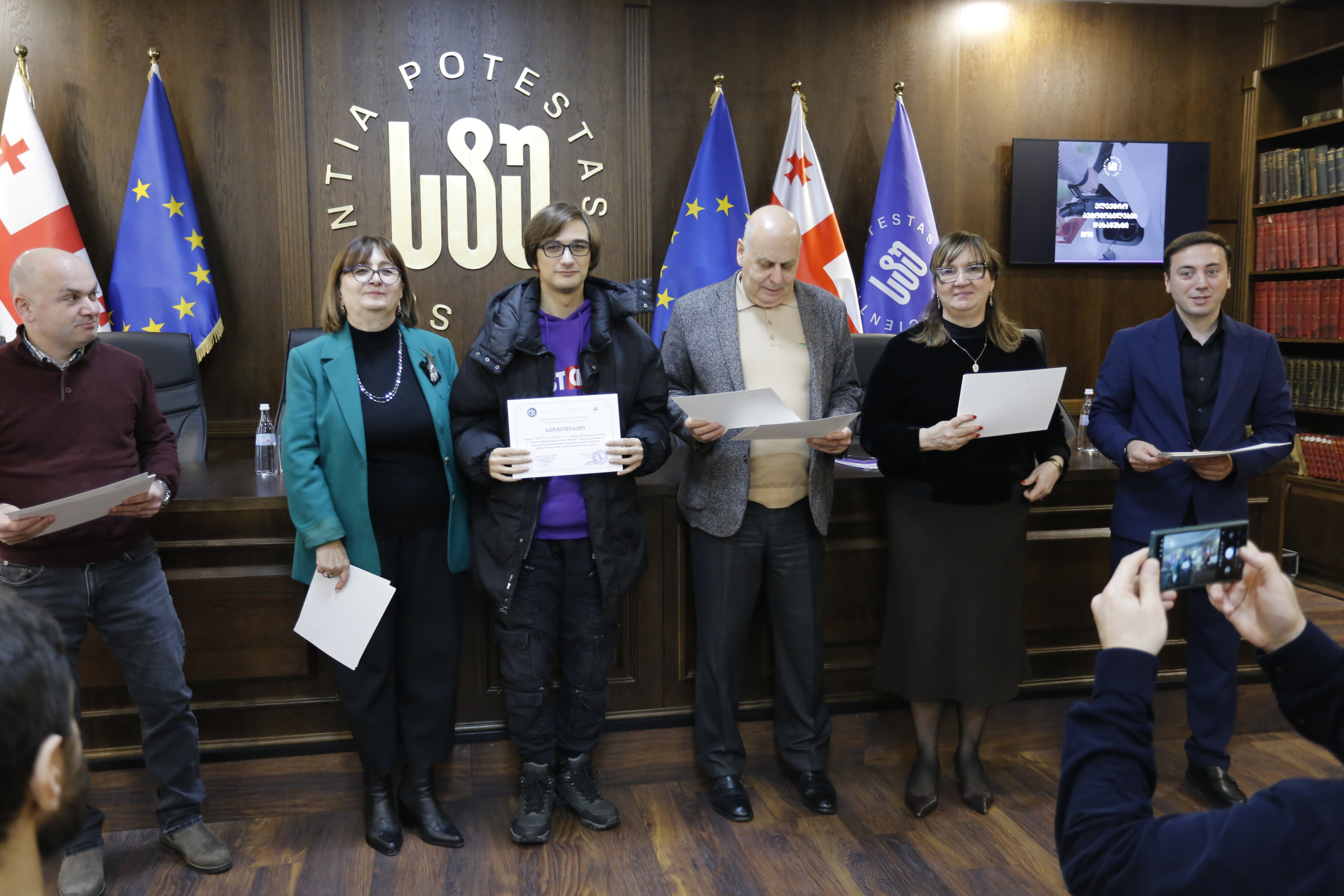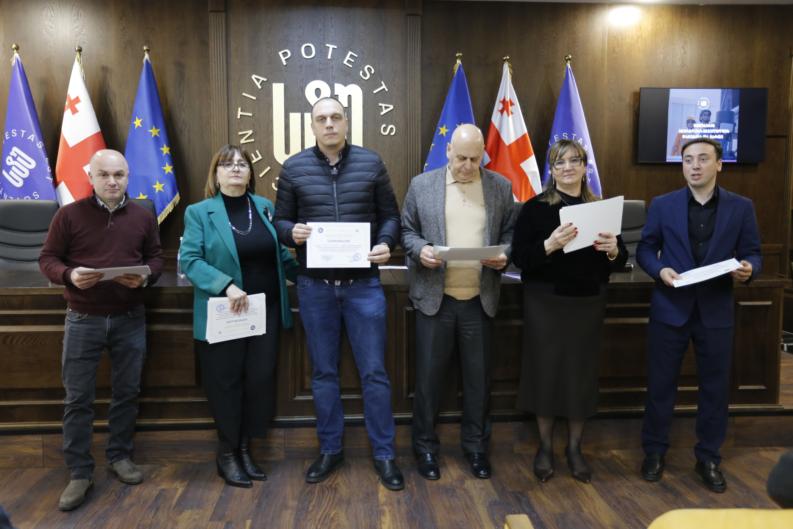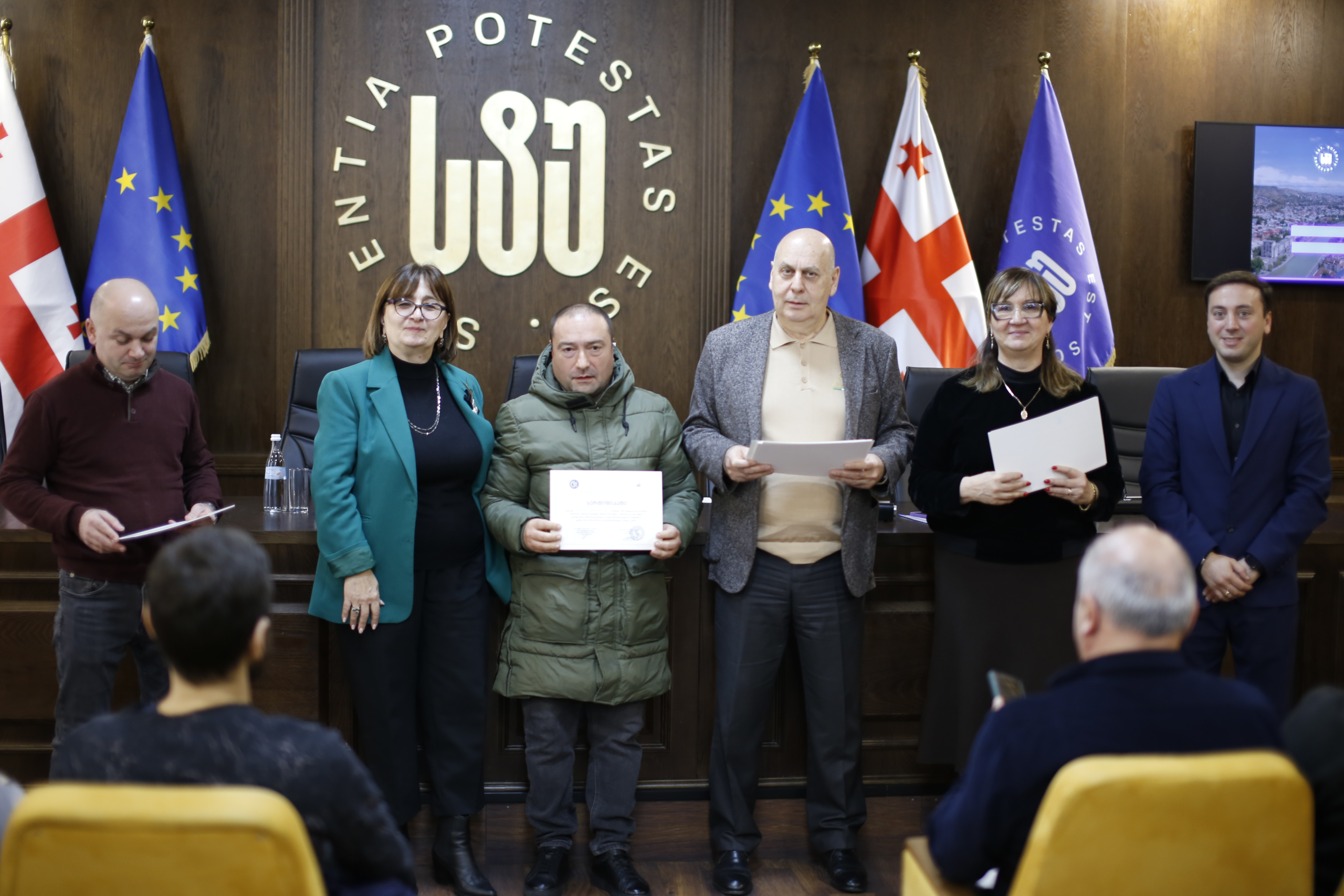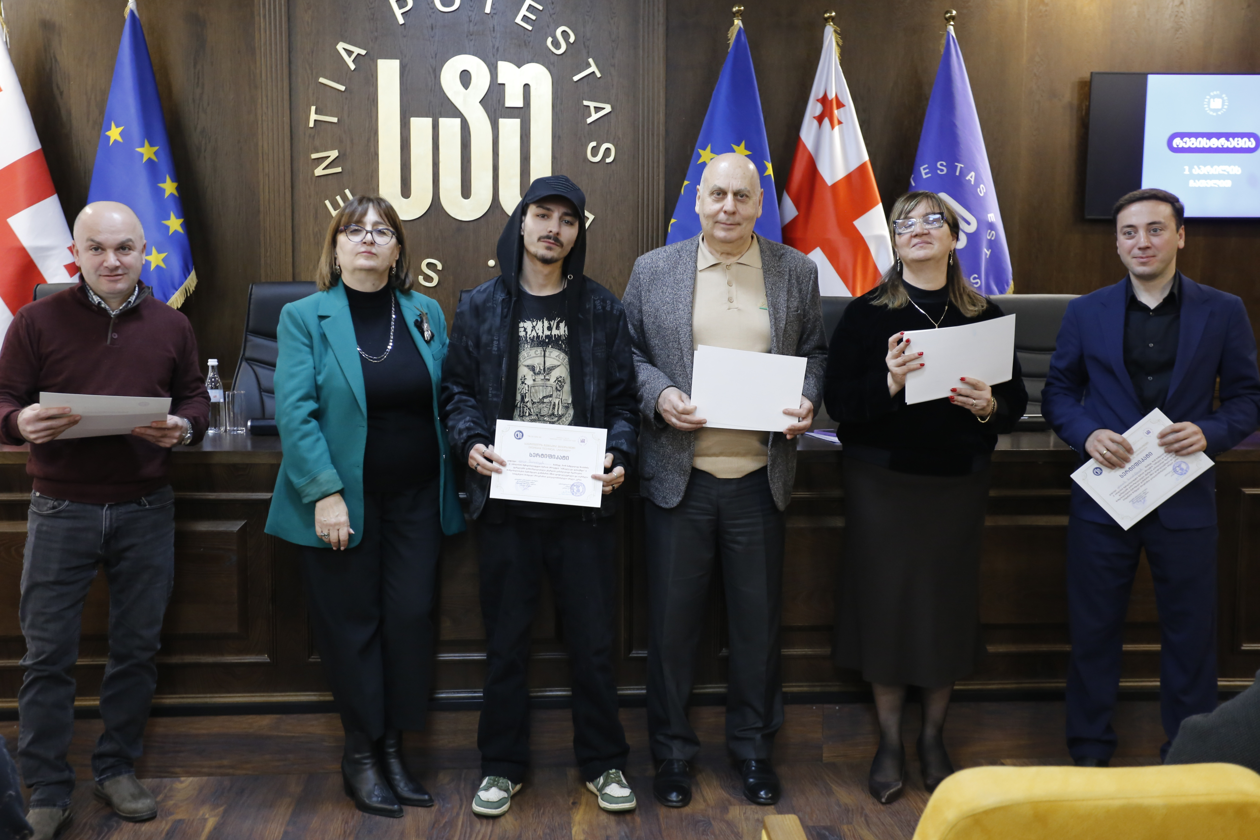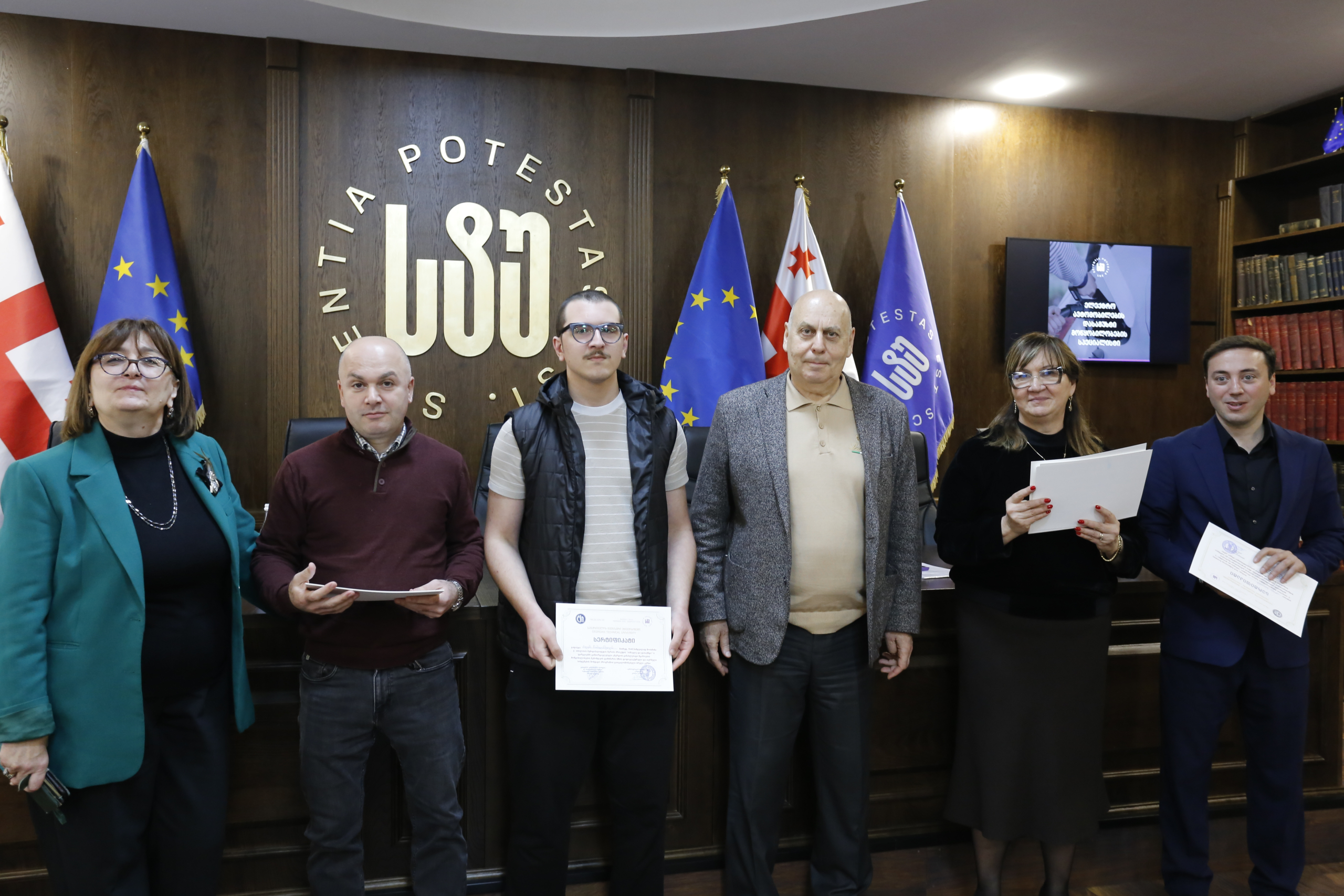 მათ სერტიფიკატები გადასცეს საქართველოს ტექნიკური უნივერსიტეტის სამეთვალყურეო საბჭოს პრეზიდენტმა პროფესორმა ზურაბ გუდავაძემ, რექტორის მრჩეველმა ასოცირებულმა პროფესორმა რატი გურგენიძემ, სატრანსპორტო სისტემებისა და მექანიკის ინჟინერიის ფაკულტეტის დეკანმა ასოცირებულმა პროფესორმა ბორის გითოლენდიამ, ინფორმატიკისა და მართვის სისტემების ფაკულტეტის დეკანმა პროფესორმა თალიკო ჟვანიამ და ენერგეტიკის ფაკულტეტის დეკანმა პროფესორმა ქეთევან ქუთათელაძემ.