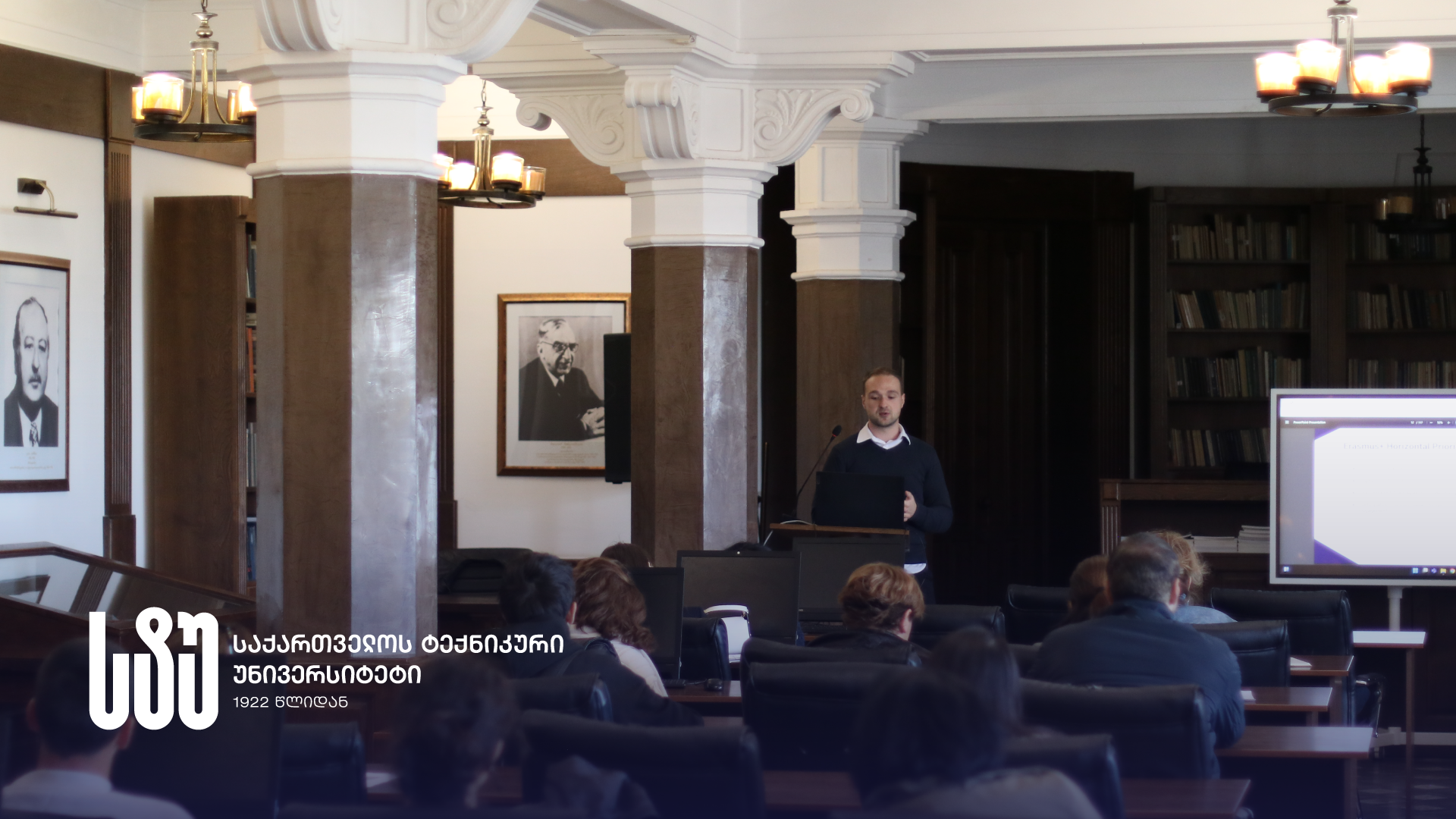 საქართველოს ტექნიკური უნივერსიტეტში, Erasmus K2 პროგრამის ფარგლებში, საინფორმაციო შეხვედრა გაიმართა, სადაც სპიკერებმა მარიამ სულაშვილმა და გიორგი მჭედლიძემ საუნივერსიტეტო საზოგადოებას უნივერსიტეტის კვლევითი ტრანსფერისა და უნივერსიტეტსა და ინდუსტრიას შორის თანამშრომლობის მეშვეობით შესაძლებლობების გაზრდის შესახებ განახლებული ცნობები მიაწოდეს.