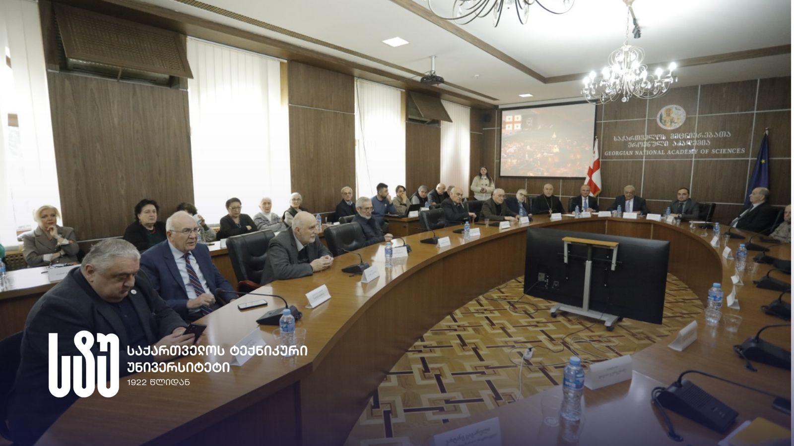 საქართველოს მეცნიერებათა ეროვნულ აკადემიაში სტუ-ის რექტორის საჯარო მოსმენა აკადემიის პრეზიდენტმა, აკადემიკოსმა როინ მეტრეველმა გახსნა.