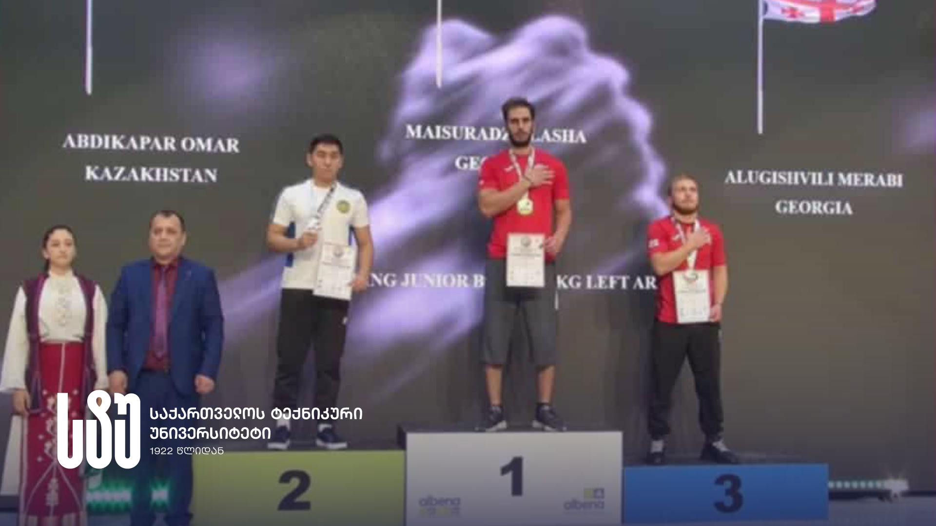 სტუ-ის რექტორი სტუდენტ ლაშა მაისურაძეს პარამკლავჭიდში ოთხგზის მსოფლიო ჩემპიონობას ულოცავს