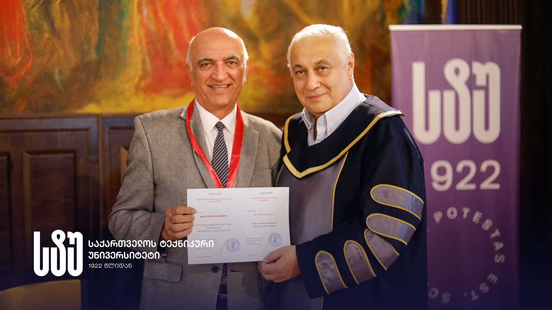 ინფორმაციისთვის: საქართველოს ტექნიკური უნივერსიტეტის აკადემიური საბჭოს გადაწყვეტილებით, 2022 წლის 19 მაისს დაწესებული ჯილდო – „ოქროს მედალი” გაიცემა უნივერსიტეტის წინაშე გაწეული განსაკუთრებული ღვაწლისთვის.