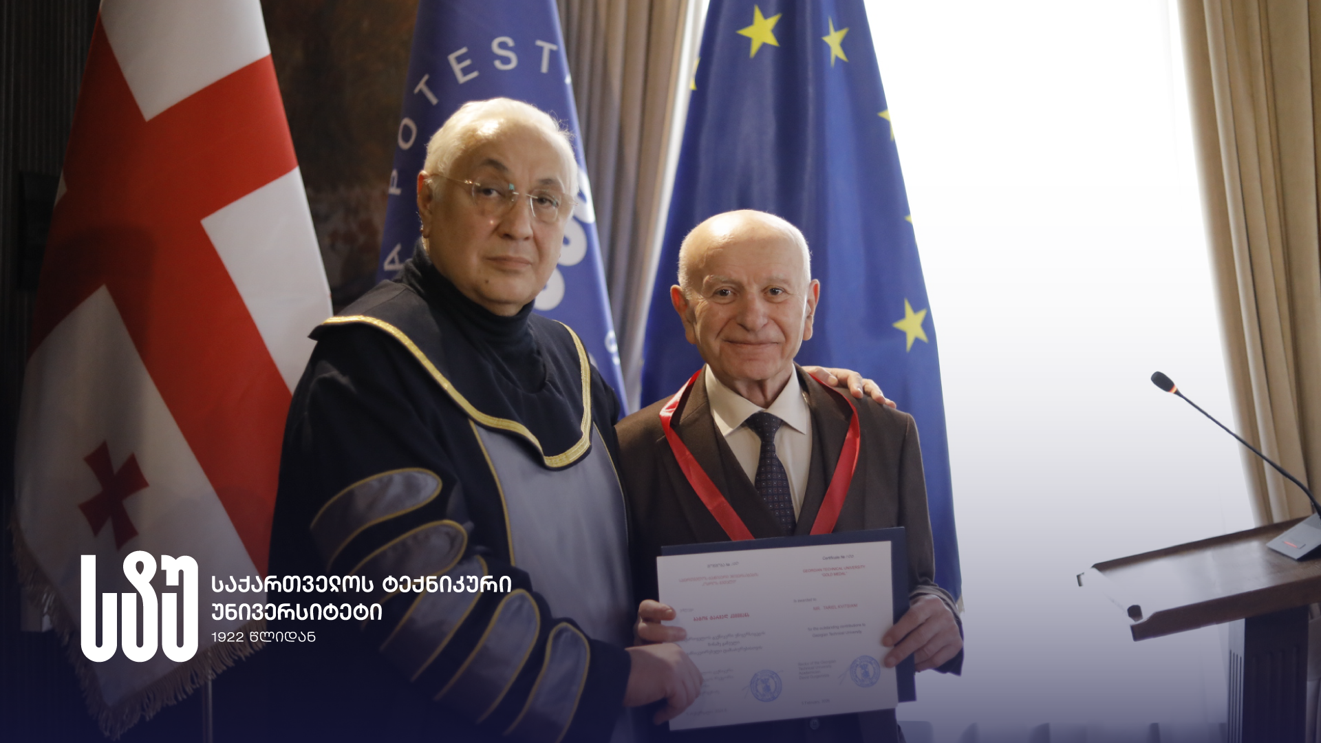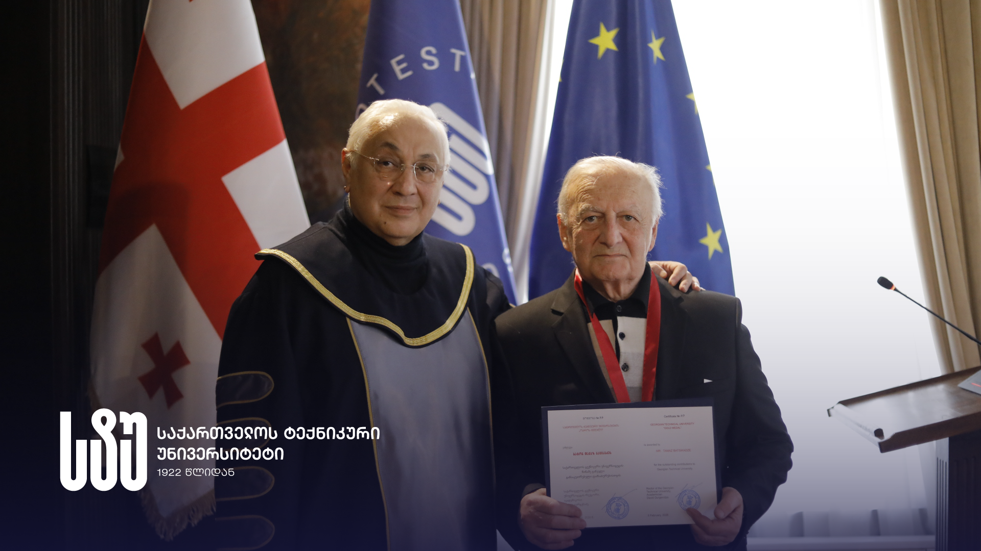 საქართველოს ტექნიკური უნივერსიტეტის რექტორმა, აკადემიკოსმა დავით გურგენიძემ, აკადემიური საბჭოს გადაწყვეტილებით, უნივერსიტეტის წინაშე გაწეული განსაკუთრებული დამსახურებისთვის, მეცნიერების განვითარებასა და ახალი თაობების აღზრდაში შეტანილი სოლიდური წვლილისთვის უნივერსიტეტის ხუთ პროფესორს სტუ-ის ოქროს მედლები და ჯილდოს დამატასტურებელი სიგელები გადასცა.