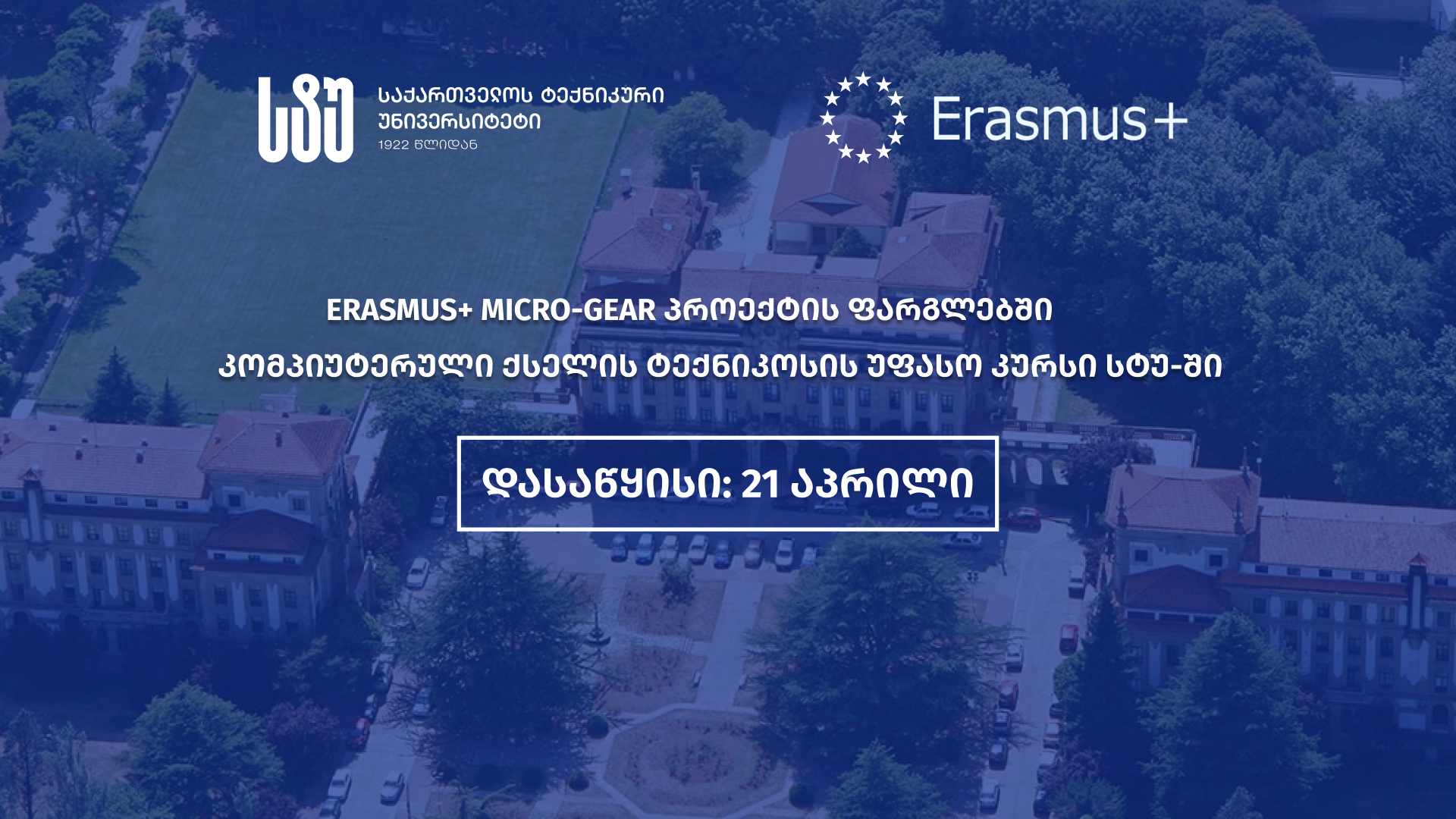 საქართველოს ტექნიკური უნივერსიტეტი, 𝙀𝙧𝙖𝙨𝙢𝙪𝙨+ პროგრამის- Micro-GEAR პროექტის ფარგლებში, ორთვიან სასწავლო კურსზე- კომპიუტერული ქსელის ტექნიკოსი, სტუდენტების მიღებას აცხადებს. სწავლა 21 აპრილს...